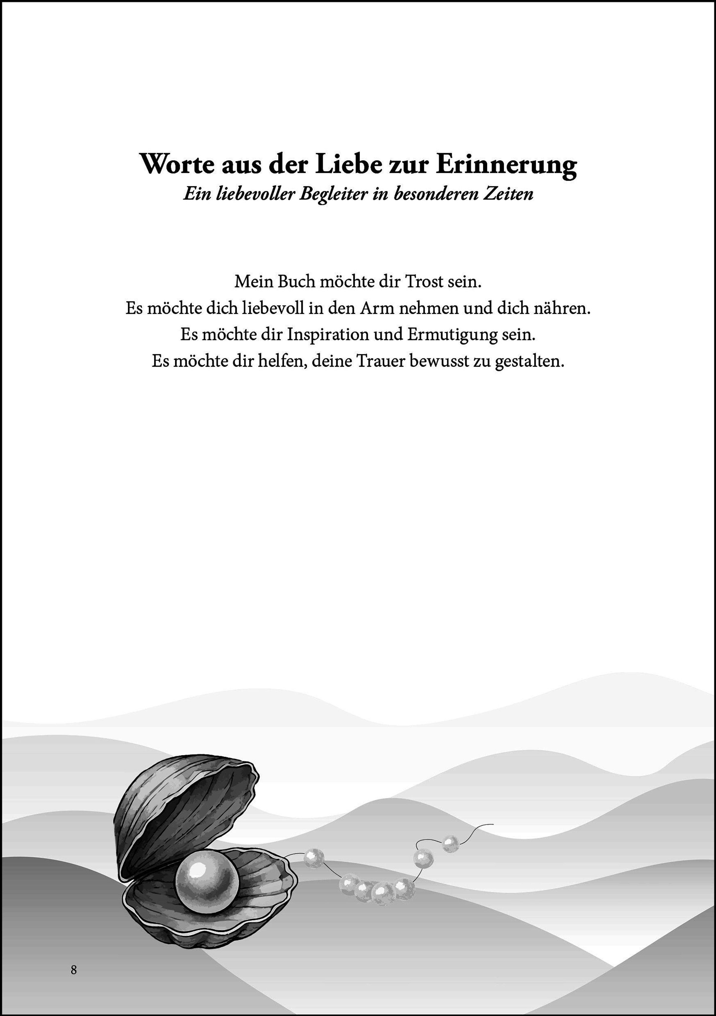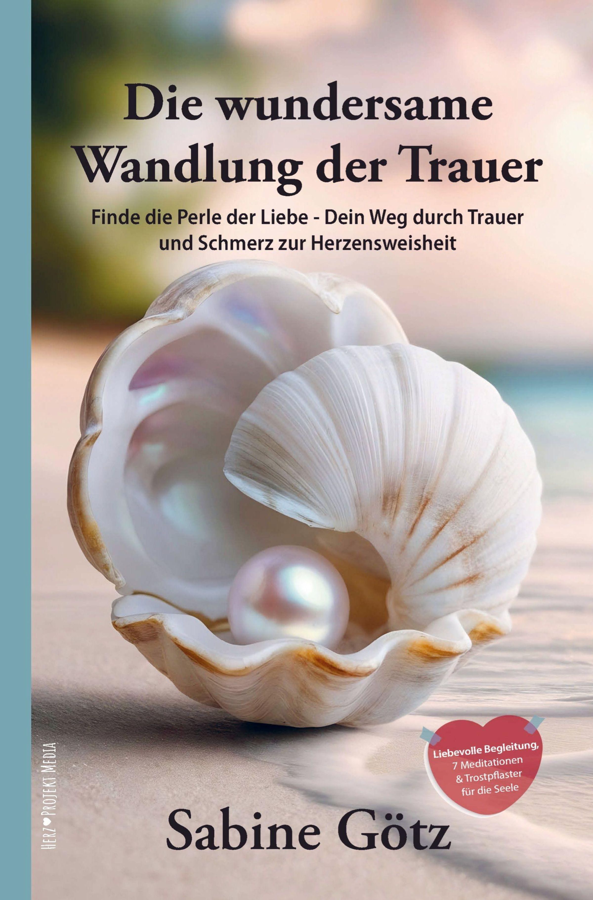 Titel: Die wundersame Wandlung der Trauer. Name: Sabine Götz. Illustration einer Muschel mit Perle und Herz-Aufkleber., Buch