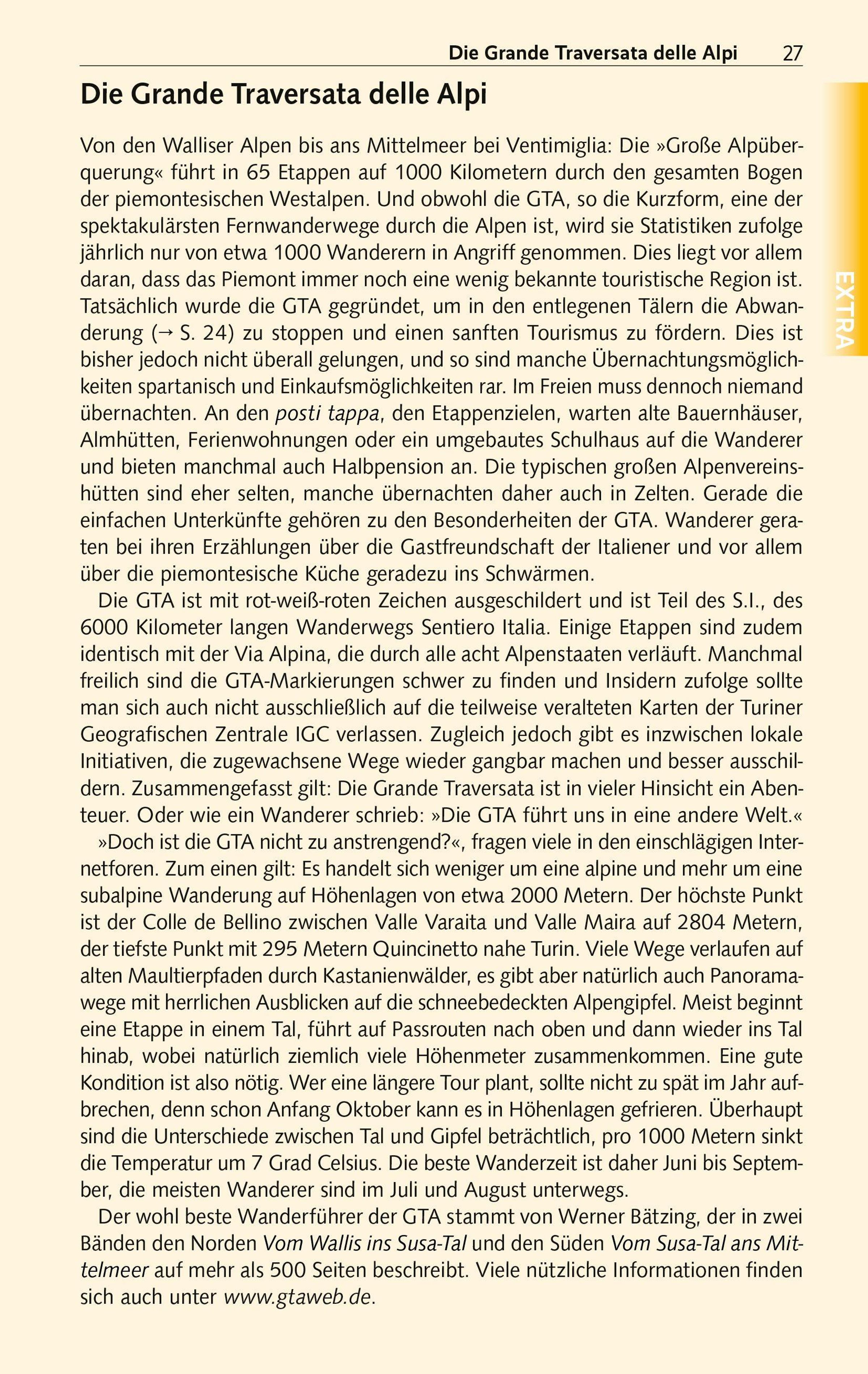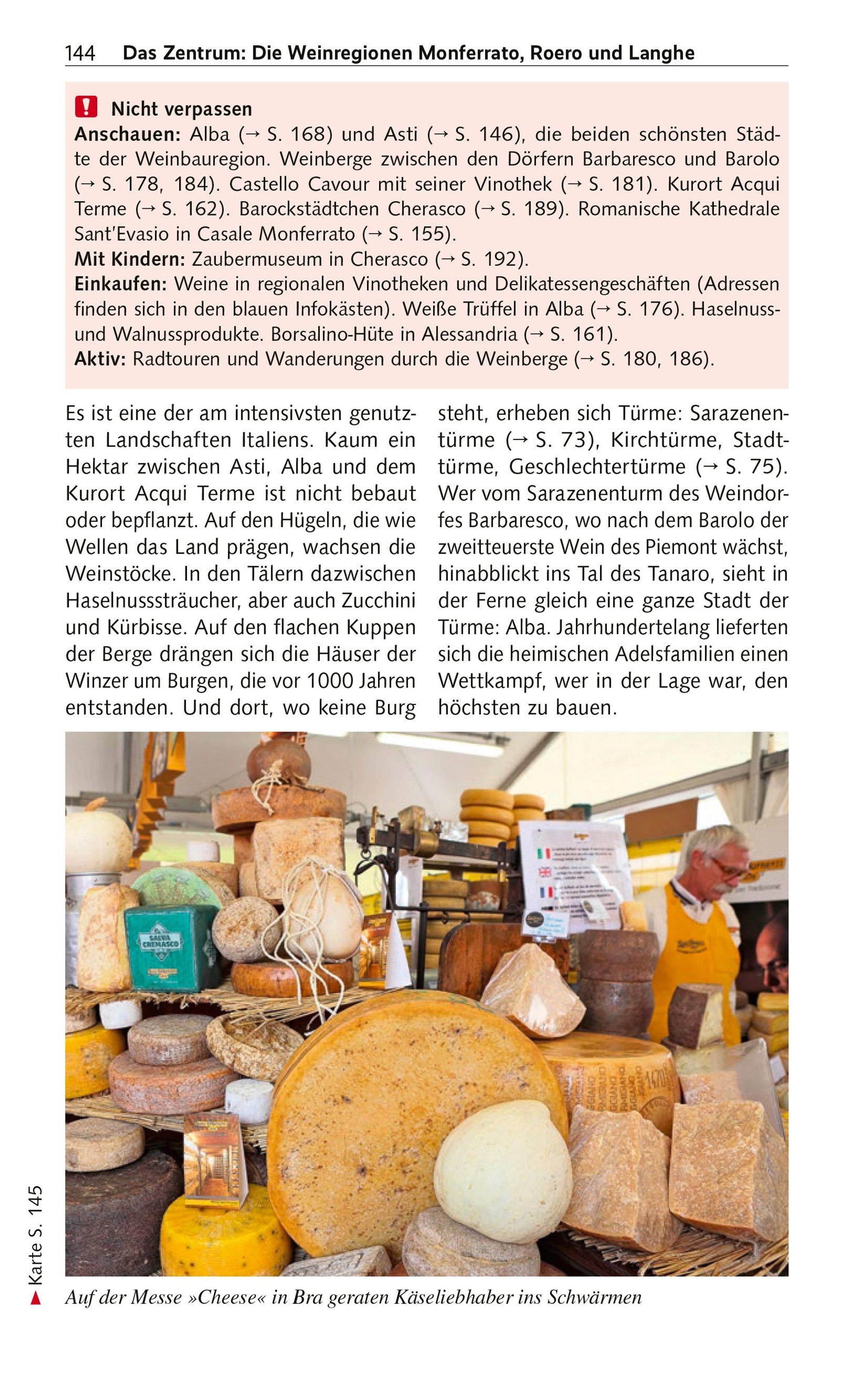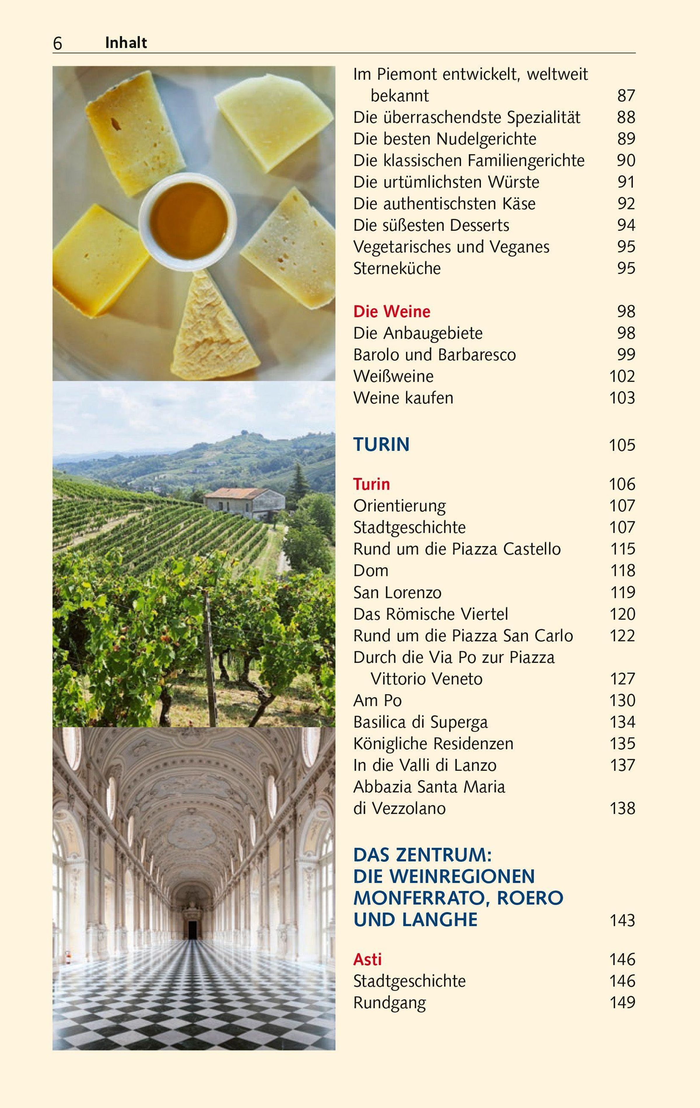 Das Piemont ist berühmt für seine große kulinarische Tradition. Rund um Alba wachsen die kostbaren weißen Trüffel. In den Weinbaugebieten Langhe und Monferrato werden die weltbekannten Tropfen Barolo und Barbaresco gekeltert. Schlösser, Klöster und Kathedralen erinnern daran, dass die Region einst Sitz der Herzöge von Savoyen war. Mit allen Sehens- und Erlebenswürdigkeiten dieses noch relativ wenig besuchten Teils Italiens macht Reisebuchautorin Sabine Herre eingehend bekannt: seien es malerische Weindörfer oder schmucke Städtchen wie Saluzzo, Mondovi oder Cuneo, denen Palazzi aus Gotik und Renaissance zur Zierde gereichen. Piemonts Hauptstadt Turin wartet als erste Kapitale des im 19. Jahrhundert geeinten Italiens mit prächtigen Barockbauten und im quirligen Römischen Viertel mit vorzüglichen Restaurants und Weinbars auf.