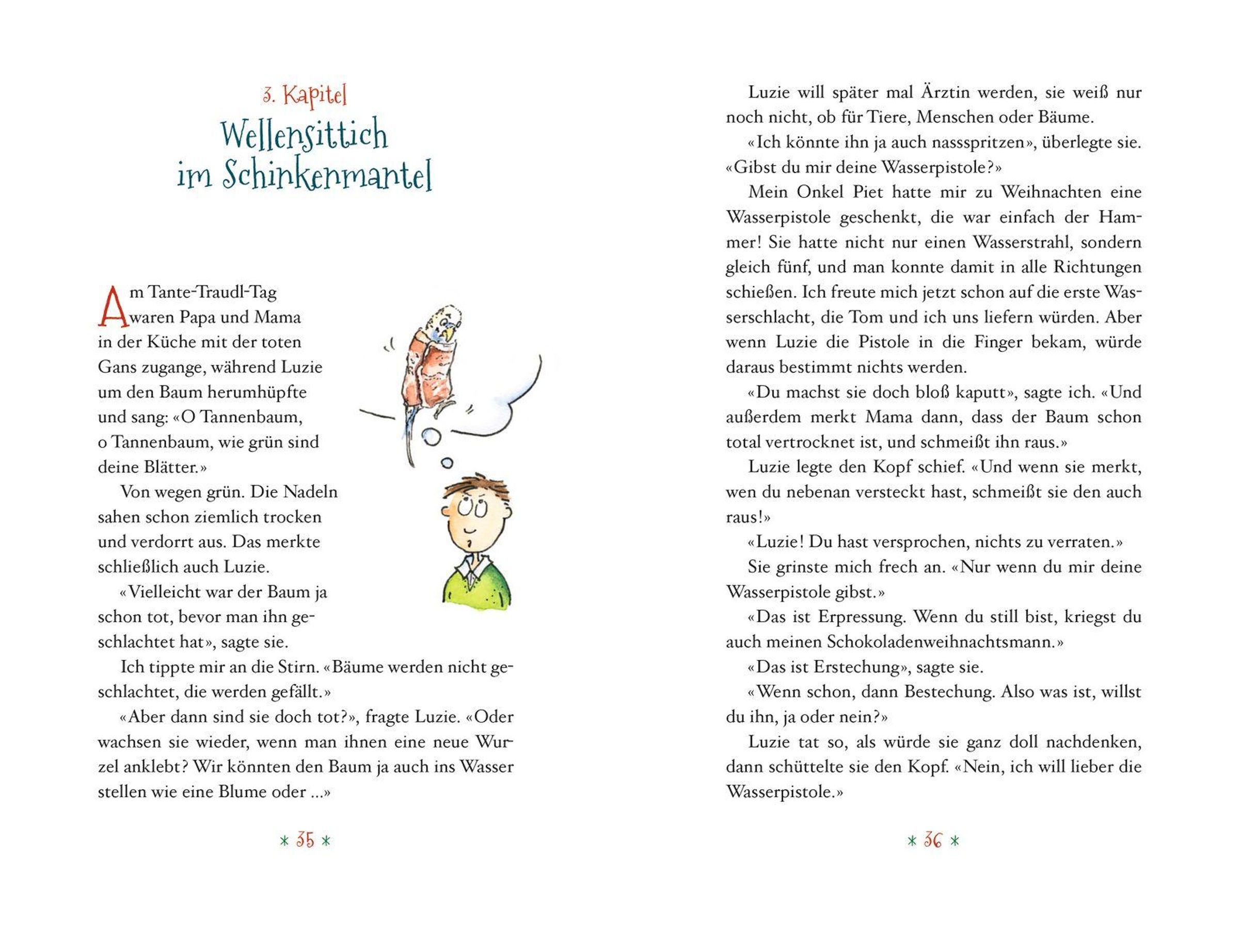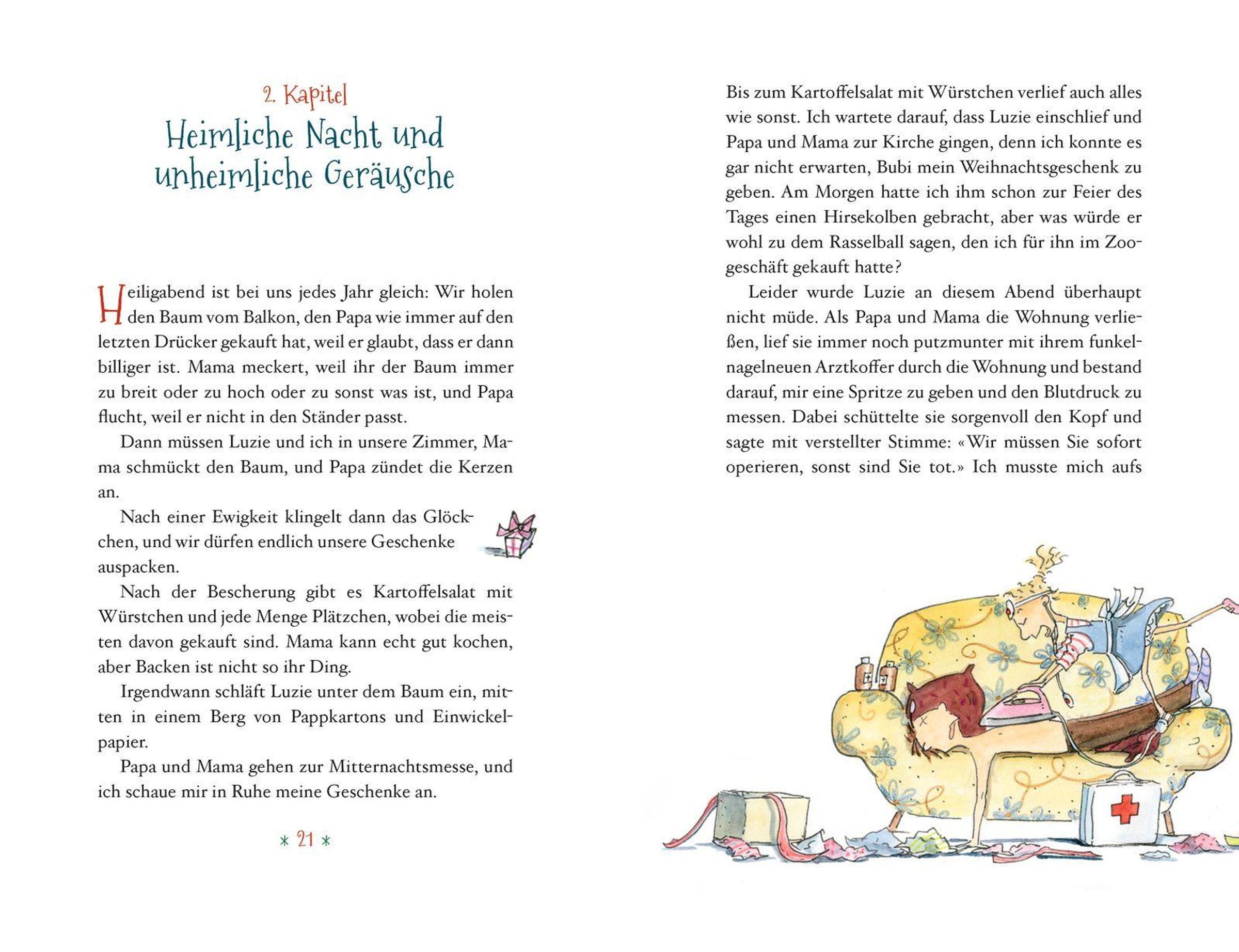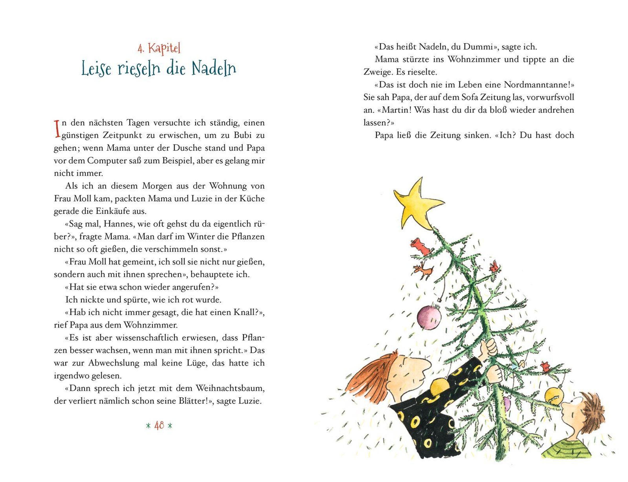 Von wegen. Bei Familie Trautwein geht es drunter und drüber. Tante Traudl liegt mit Grippe im Bett, dabei wird doch extra für sie jedes Jahr ein richtiger Weihnachtszauber veranstaltet, mit Gänsebraten und echten Kerzen am Baum. Wie soll Mama sonst die schöne Biedermeierkommode erben, mit der sie schon seit Jahren liebäugelt? Hannes dagegen hat ein ganz anderes Problem: Er hält einen Wellensittich versteckt, von dem niemand etwas wissen darf, denn Mama ist allergisch gegen alle Tiere. Dummerweise kann er nicht gut lügen und seine Schwester Luzie erst recht nicht. Und dann ist da noch der misstrauische Vermieter, der überall rumschnüffelt. Als Tante Traudl schließlich doch eintrifft, schlägt für alle die Stunde der Wahrheit ...