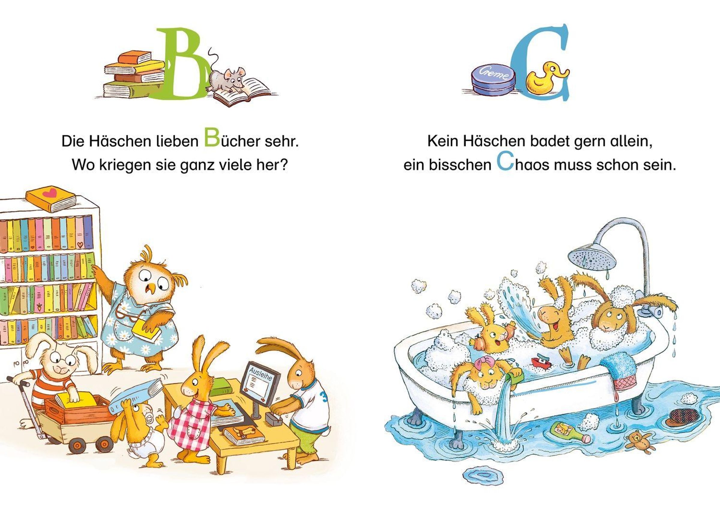 So ein Tag der sieben kleinen Hasen ist voller großer und kleiner Abenteuer. Die meisten machen einen Riesenspaß, wie zum Beispiel Erdbeer-Eis essen, andere sind aber auch nicht so toll, etwa wenn die Häschen Fieber bekommen. Mit dem ABC-Buch der liebenswerten Hasenfamilie werden Erstleser*innen in alphabetischer Reihenfolge durch eine bunte Sammlung aus erstaunlichen Erlebnissen, heiteren Hobbys und lustigen Lieblingsdingen geführt. Die Buchstaben werden dabei mit den für Praml typischen Reimen entdeckt und gefestigt.