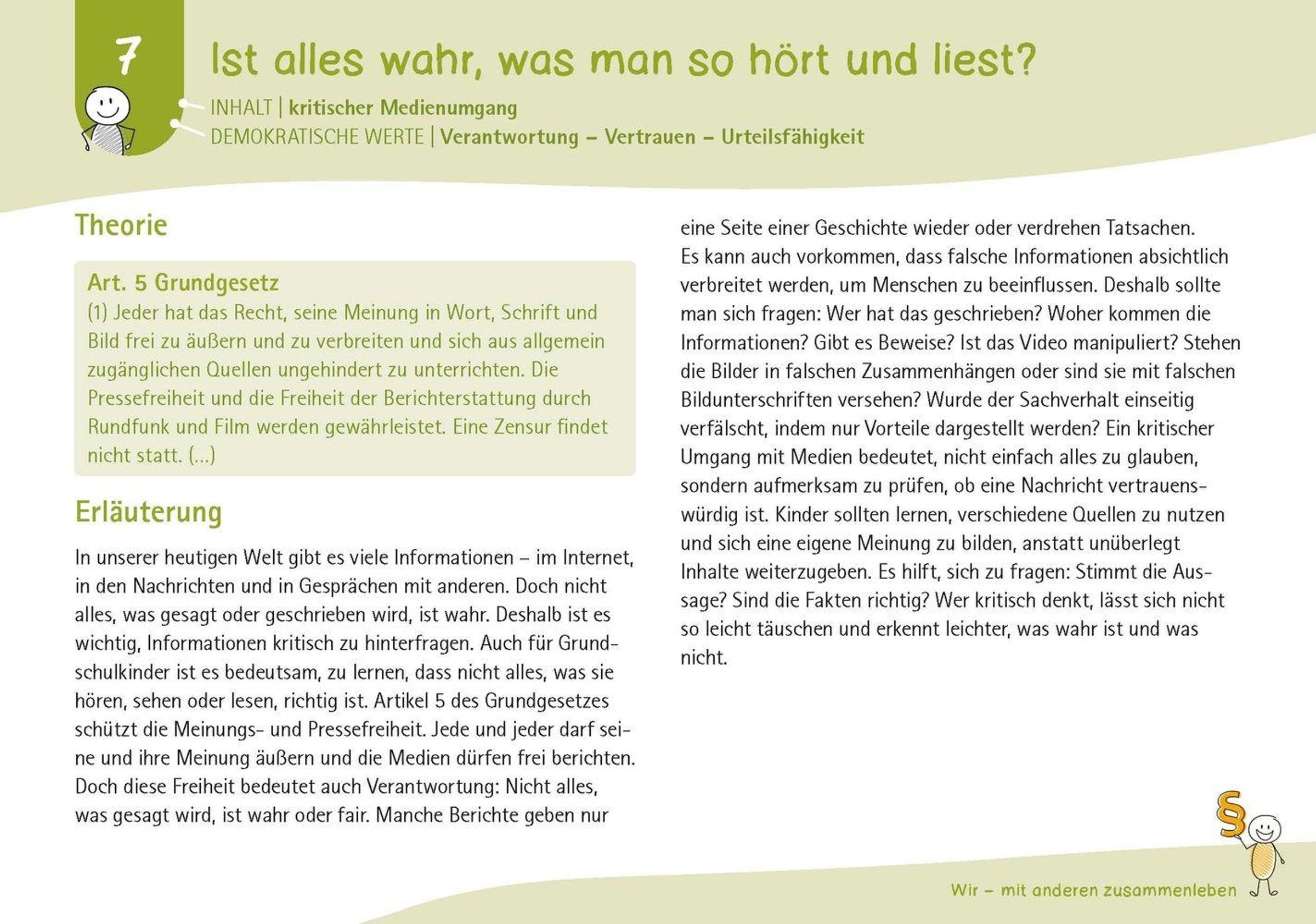 Karteikarten zur Demokratiebildung für Lehrer und Lehrerinnen an Grundschulen und Förderschulen, Sachunterricht, Klasse 1-4 +++ So fördern Sie Demokratiebildung im Klassenzimmer: Dieses praktische Kartenset unterstützt Sie als Lehrkraft in den Klassen 1 bis 4 dabei, Kindern wichtige Werte und Prinzipien des Grundgesetzes nahezubringen. Jede Karte bietet auf der Vorderseite Hintergrundinformationen zum jeweiligen Grundgesetz und auf der Rückseite dazu passende ausgearbeitete Unterrichtsideen - von Geschichten bis zu Gesprächsanlässen aus der Lebenswelt der Kinder.