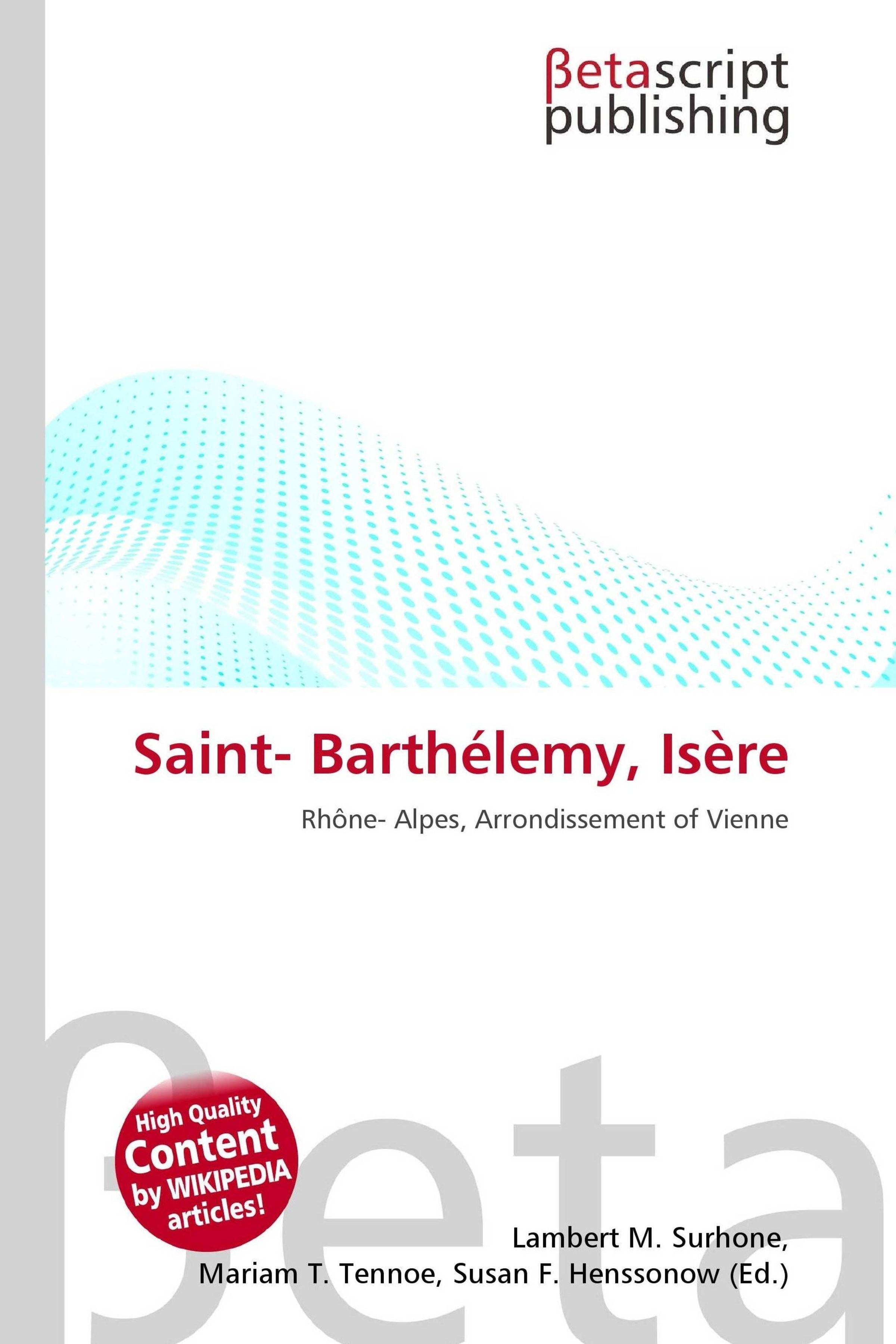 Please note that the content of this book primarily consists of articles available from Wikipedia or other free sources online. Saint-Barthélemy is a commune in the Isère department in south-eastern France. Isère is a department, in the Rhône-Alpes (Rôno-Arpes in Arpitan) region in the east of France named after the river Isère. Isère is one of the original 83 departments created during the French Revolution on March 4, 1790. It was created from part of the former province of Dauphiné. Its area has been reduced twice, in 1852 and again in 1967. Isère was also the name of the French ship which delivered the 214 boxes holding the Statue of Liberty.