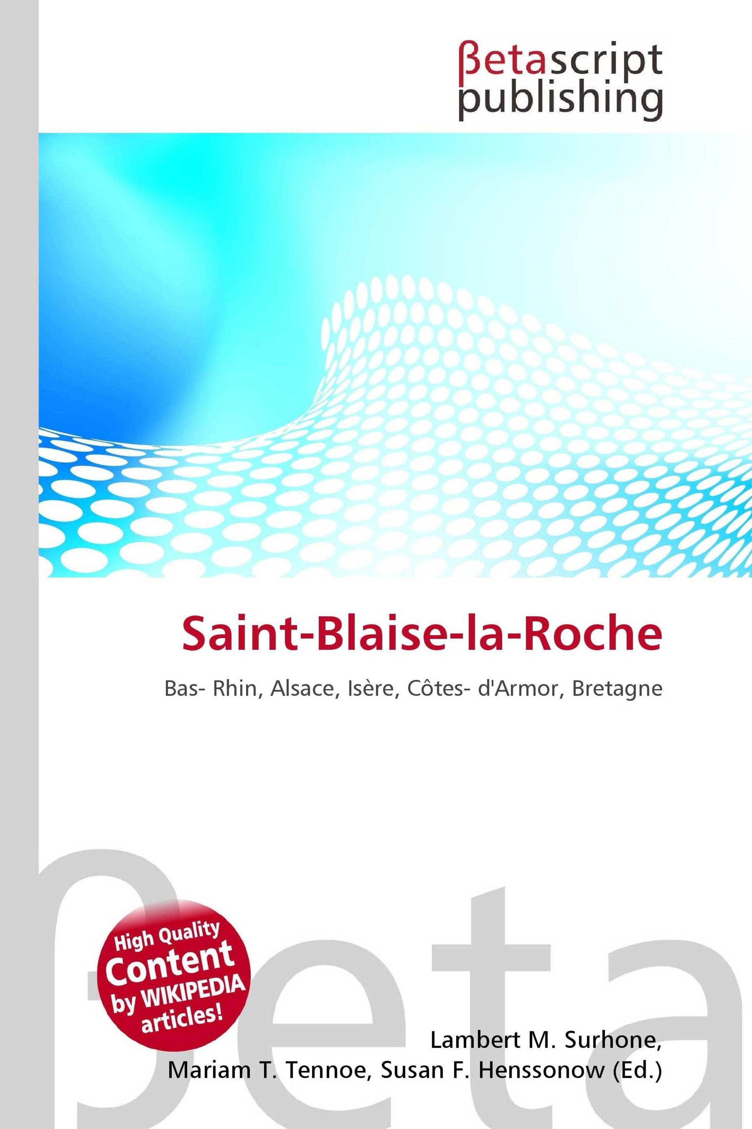 Please note that the content of this book primarily consists of articles available from Wikipedia or other free sources online. Saint-Blaise-la-Roche is a commune in the Bas-Rhin department in Alsace in north-eastern France. Bas-Rhin is one of the original 83 departments created on 4 March 1790, during the French Revolution. In the mid-1790s, following the French occupation of the entire left bank of the Rhine, the northern boundary of the department was extended north beyond the Lauter to the Queich river to include the areas of Annweiler am Trifels, Landau in der Pfalz, Bad Bergzabern, and Wörth am Rhein. However, upon Napoleon's second defeat in 1815, the Congress of Vienna reassigned the areas north of the Lauter to Bavaria; and those territories are now presently located in the neighbouring German state of Rhineland-Palatinate.