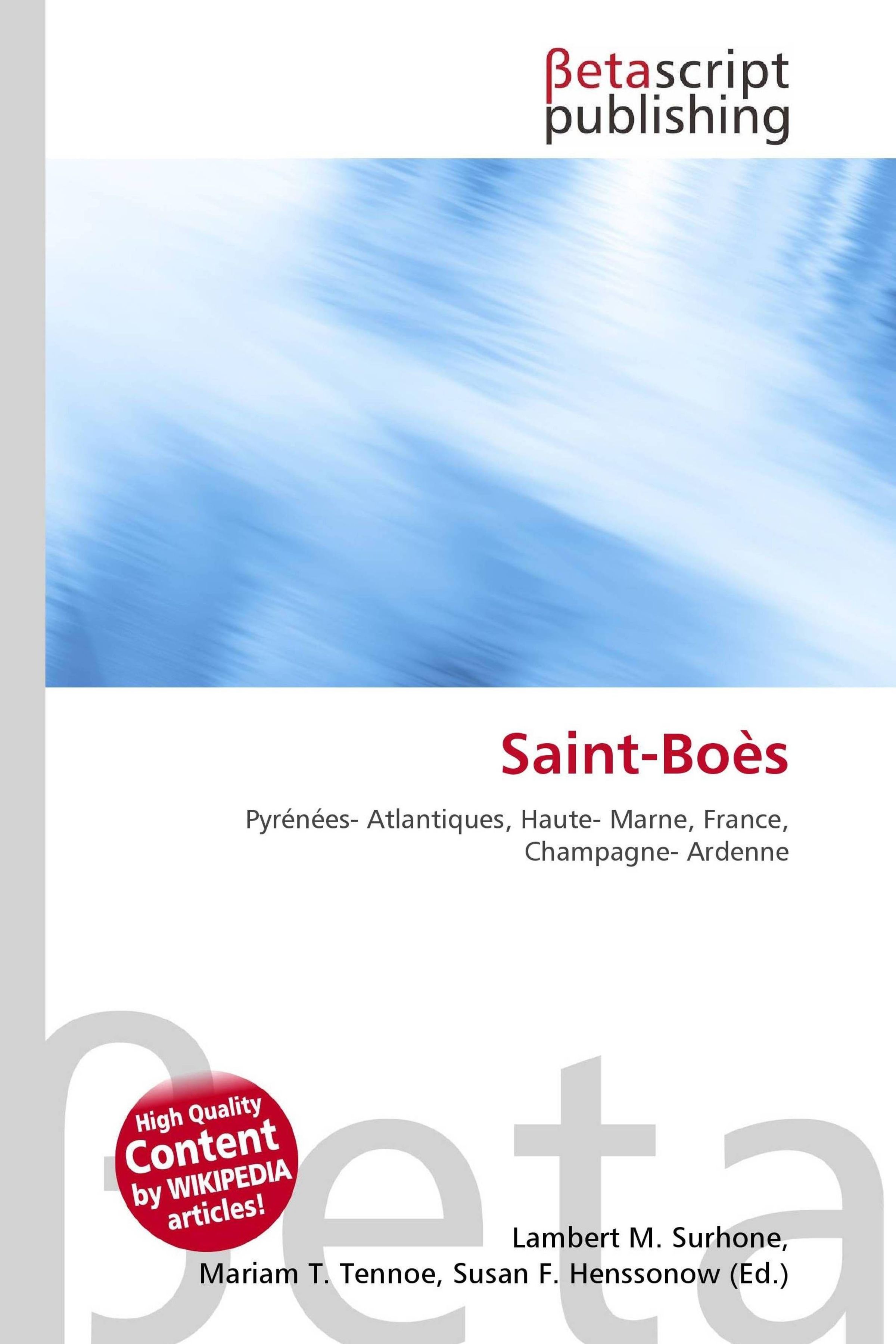 Please note that the content of this book primarily consists of articles available from Wikipedia or other free sources online. Saint-Boès is a commune in the Pyrénées-Atlantiques department in south-western France. Basses-Pyrénées is one of the original 83 departments of France created during the French Revolution, on March 4, 1790. It was created from parts of the former provinces of Guyenne, Béarn, and Gascony and included the three traditional provinces of the northern Basque Country: Labourd, Soule and Basse-Navarre. It also included two tiny exclaves of Bigorre which were located within Béarn.