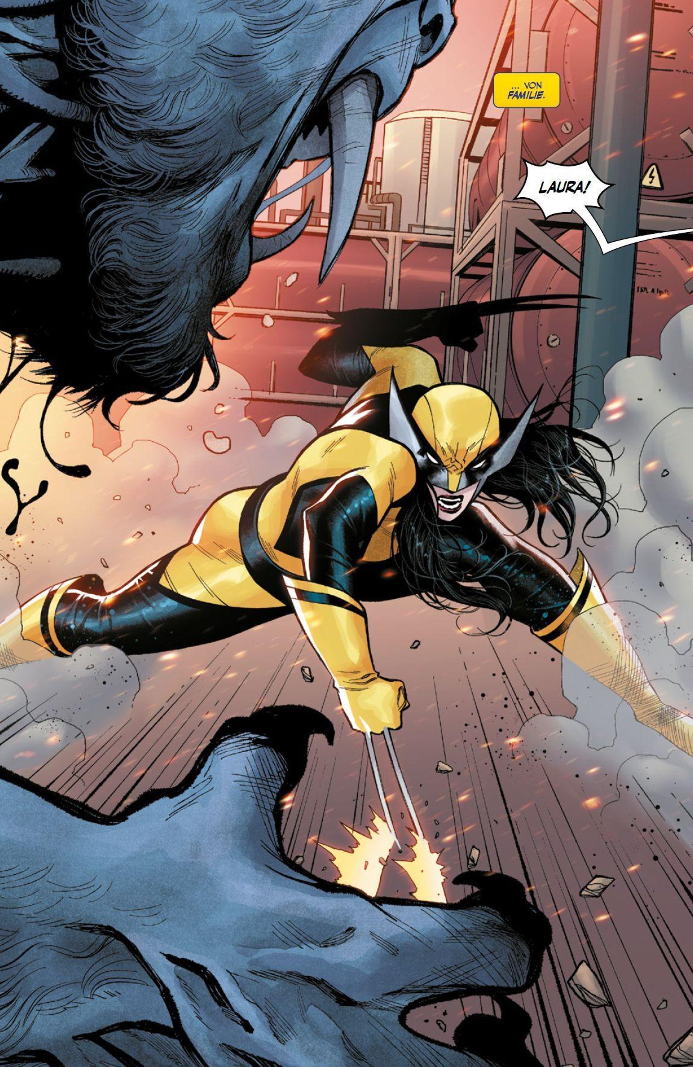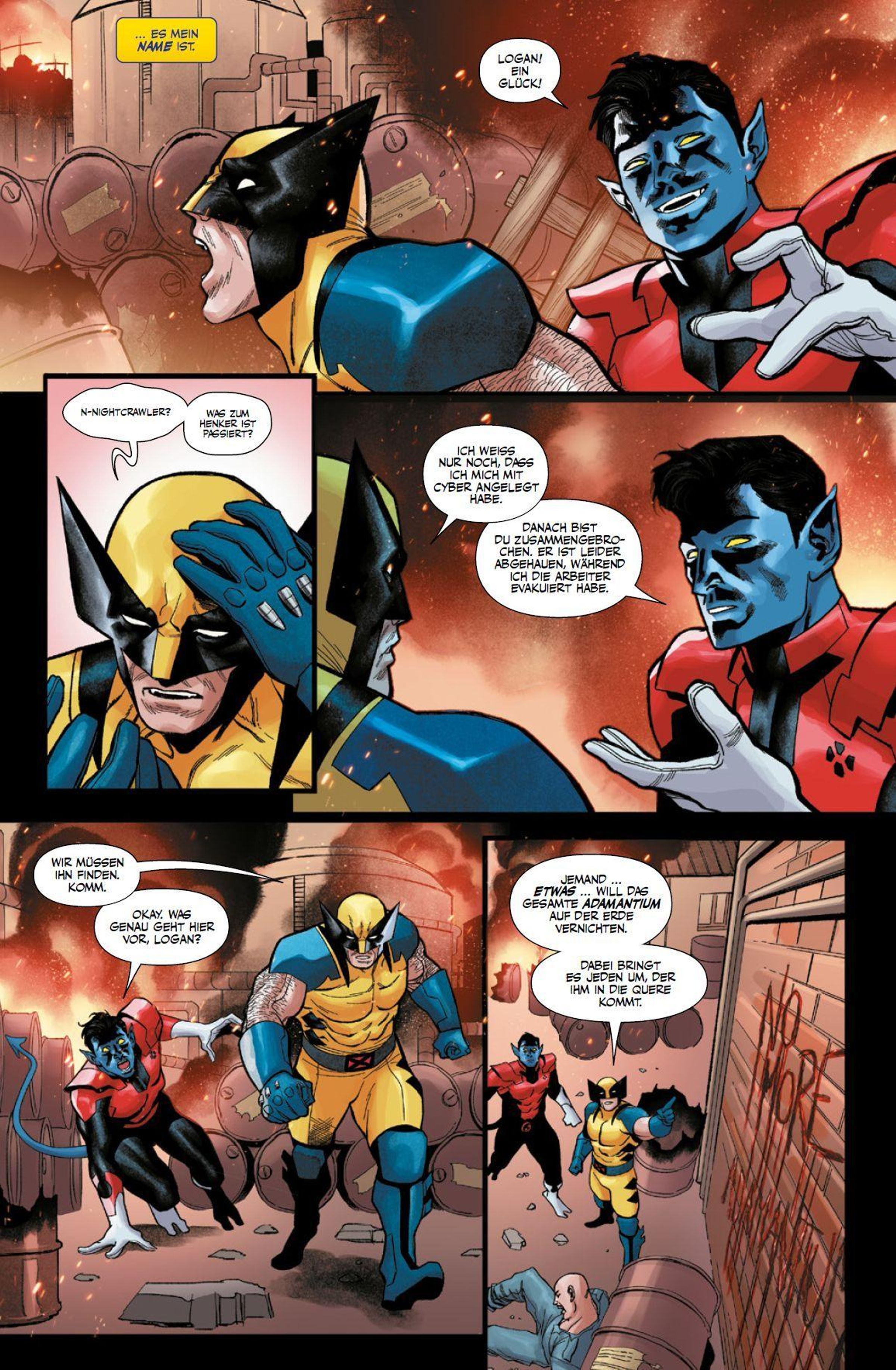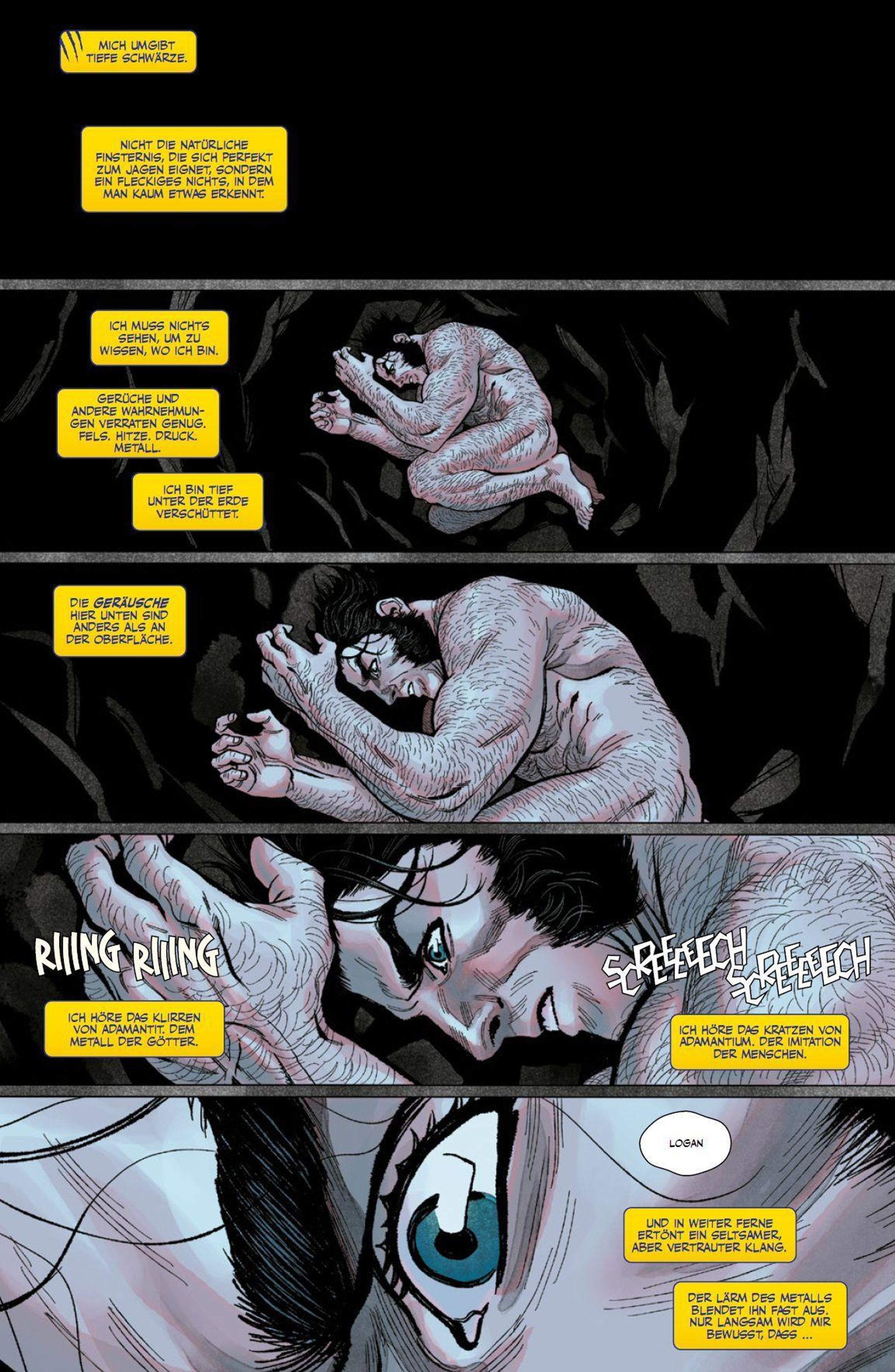 EINE WELT OHNE ADAMANTIUM Adamantium trifft auf Adamantium als Logan, Laura Kinney und Nightcrawler mit Lady Deathstrike, Cyber, Constrictor und Donald Pierce die Krallen und Klingen kreuzen. Doch die Schurken sind nicht wirklich Herr ihrer Sinne. Eine uralte Macht hat sie in ihrer Gewalt und beabsichtigt, die unzerstörbare Legierung vom Antlitz der Erde zu tilgen. Und als ein fünfter Gegner den Ring betritt, der älter ist als Rom, könnte das mysteriöse goldene Metall namens Adamantit Wolverines Ende bedeuten.