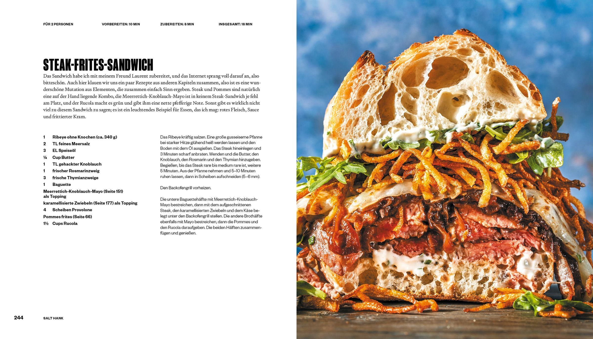Wenn Salt Hank auf TikTok und Instagram sein Messer schwingt, läuft Foodies das Wasser im Mund zusammen: Blitzschnell hackt und brutzelt er die krossesten Sandwiches und saftigsten Fleischgerichte. Seine dekadenten Saucen bringen vermeintliches Junkfood wie Burger und Tacos aufs nächste Level. Hier gibt es die Rezepte für seine Kultgerichte: von Burritos bis Ribs und natürlich seine speziellen Dips und Saucen, die aus jedem Sandwich eine Geschmacksexplosion machen - Männerküche im besten Sinne!