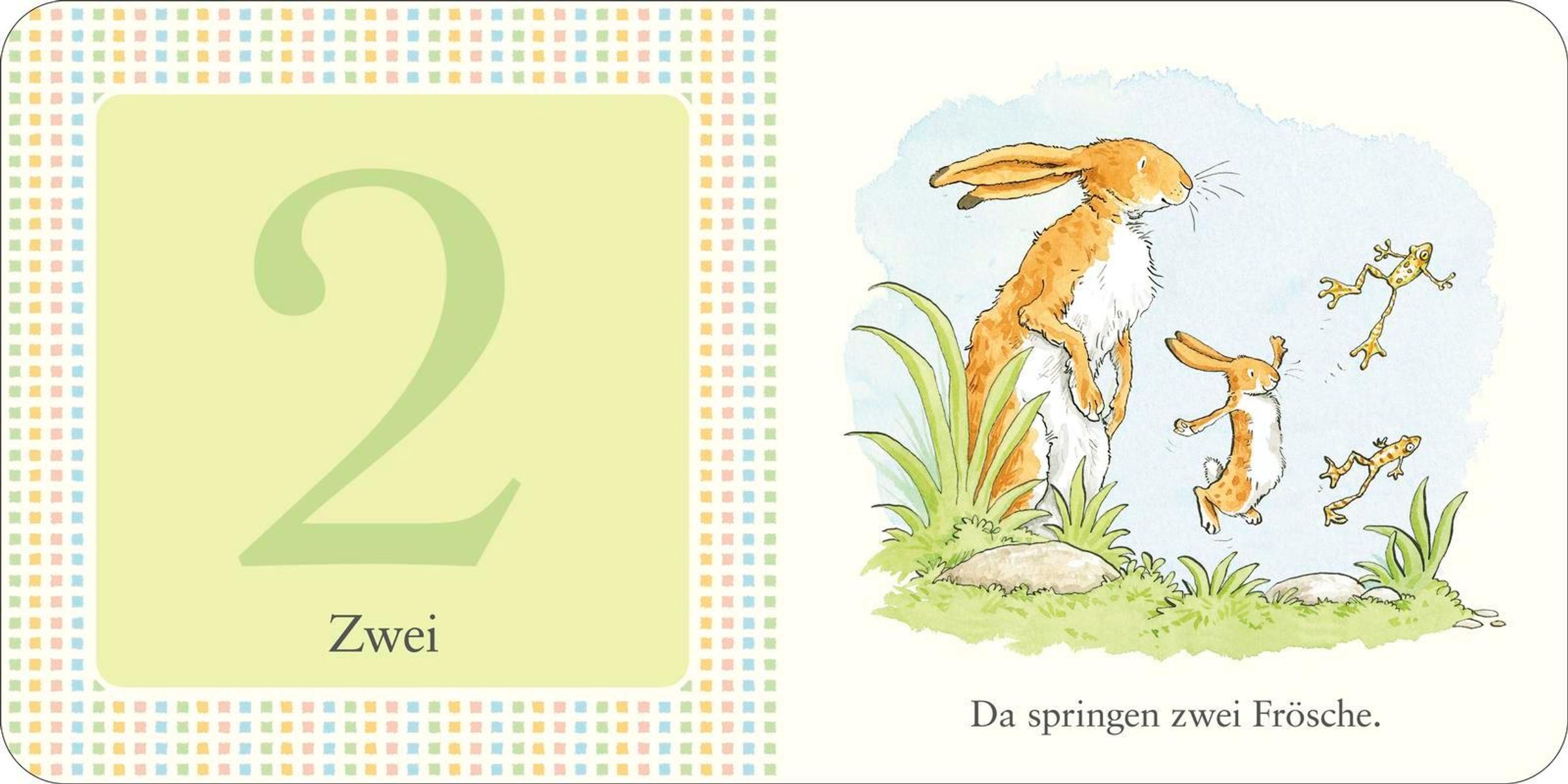 Der kleine Hase entdeckt die Welt. Beim Herumtollen in der Natur hilft ihm der große Hase beim Zählen. Er findet eine Pusteblume, drei Schmetterlinge und fünf Sterne am Himmel sagen ihm Gute Nacht. Mit dem liebevoll gestalteten Pappbilderbuch mit dem kleinen Hasen des Weltbestsellers macht das Zählen von 1 bis 5 besonders viel Spaß.