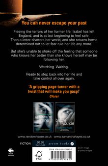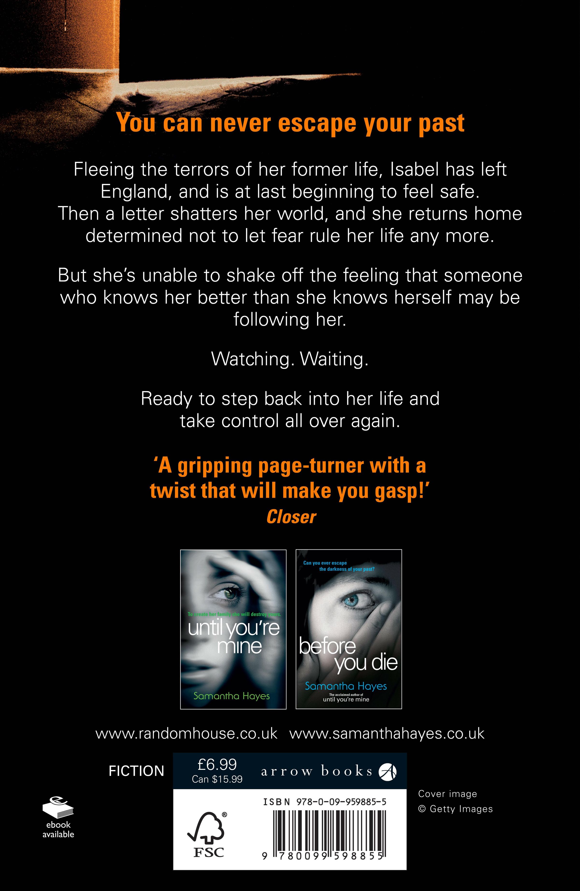 This compelling new psychological suspense novel featuring DI Lorraine Fisher, from the author of UNTIL YOU'RE MINE, is perfect for fans of S J Watson and Sophie Hannah. Fleeing the terrors of her former life, Isabel has left England, and is beginning to feel safe at last. Then a letter shatters her world and she's unable to shake off the feeling that someone may be watching her...