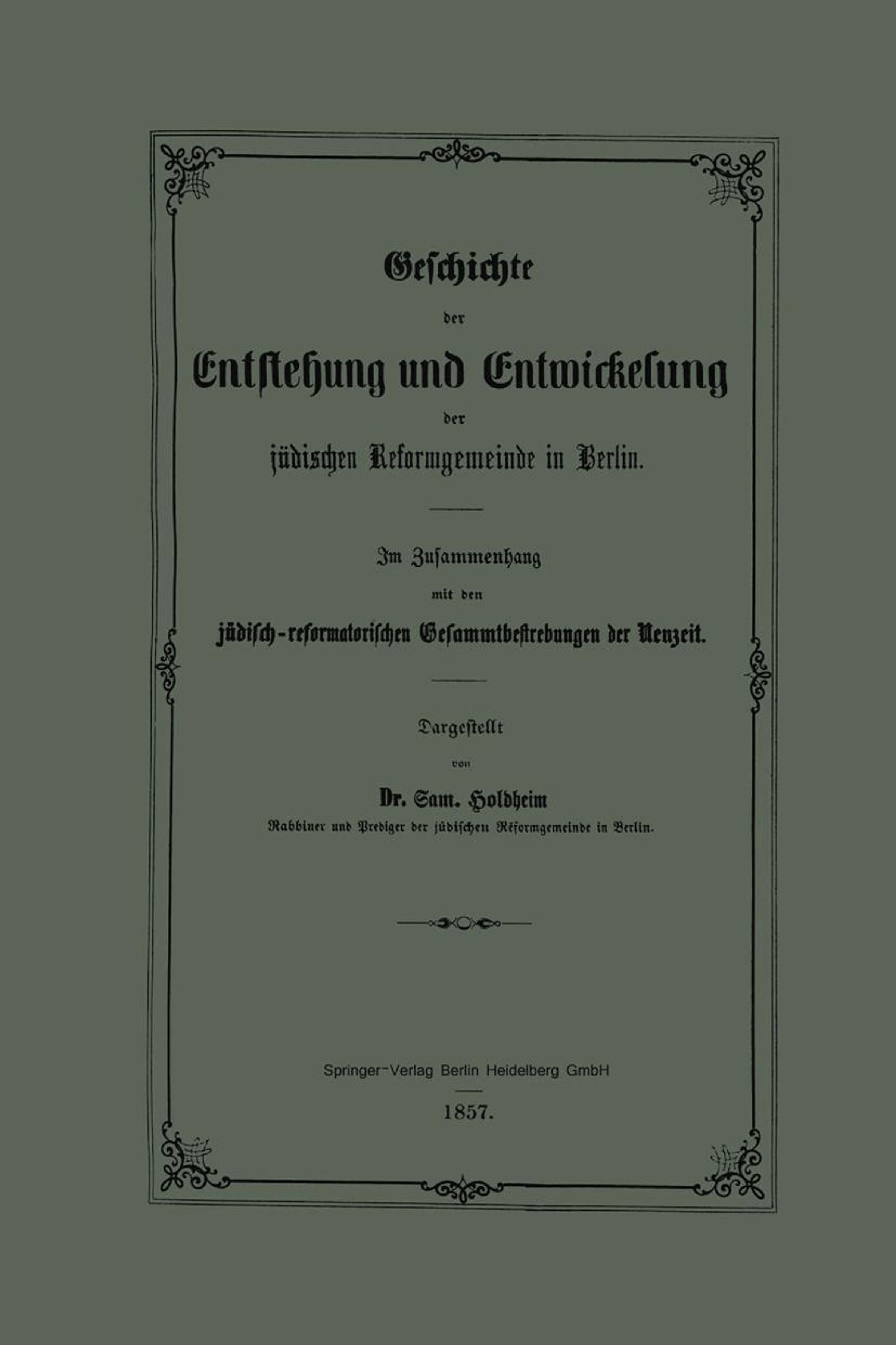 Geschichte der Entstehung und Entwickelung der jüdischen Reformgemeinde in Berlin