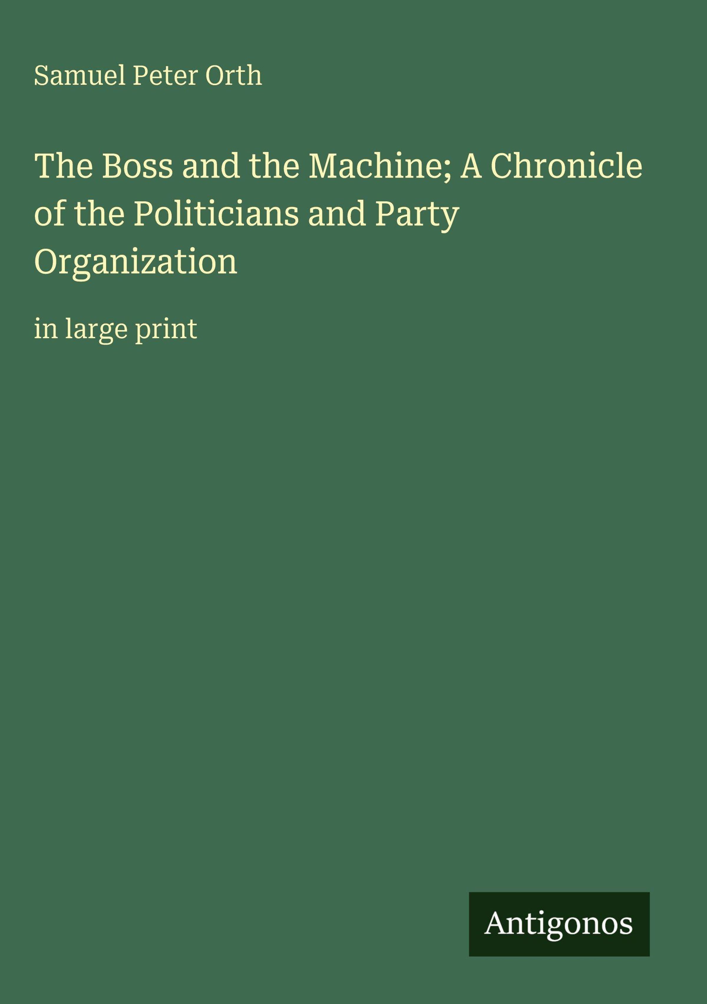 Samuel Peter Orth: The Boss and the Machine; A Chronicle of the Politicians and Party Organization, Gebunden