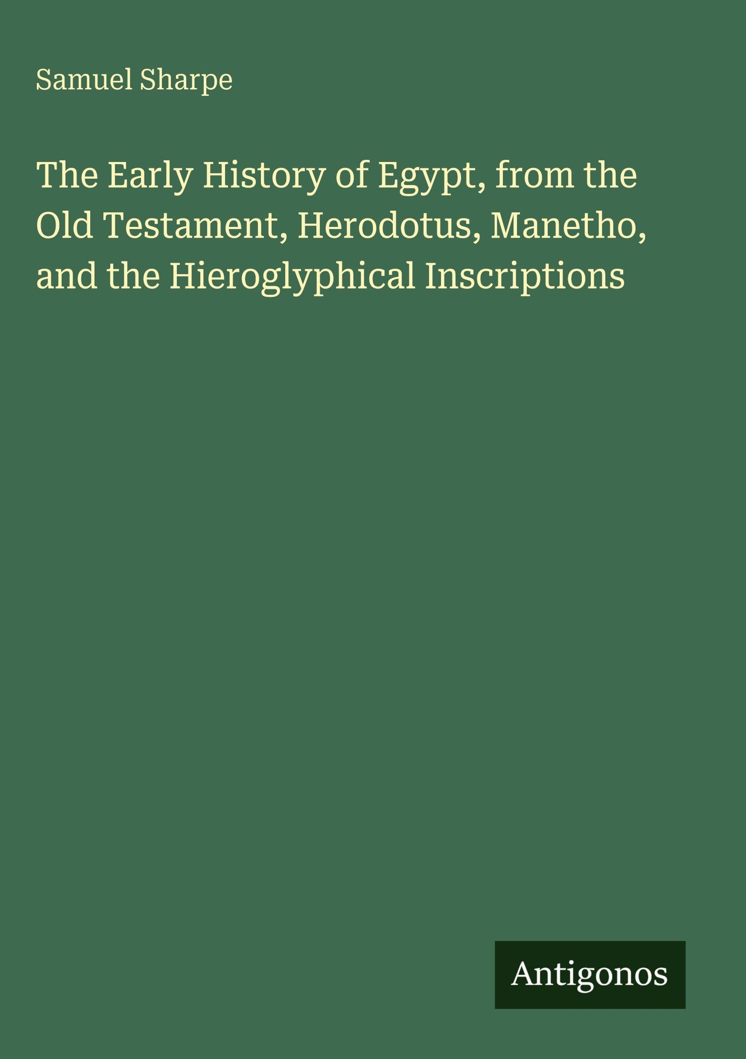 The Early History of Egypt, from the Old Testament, Herodotus, Manetho, and the Hieroglyphical Inscriptions