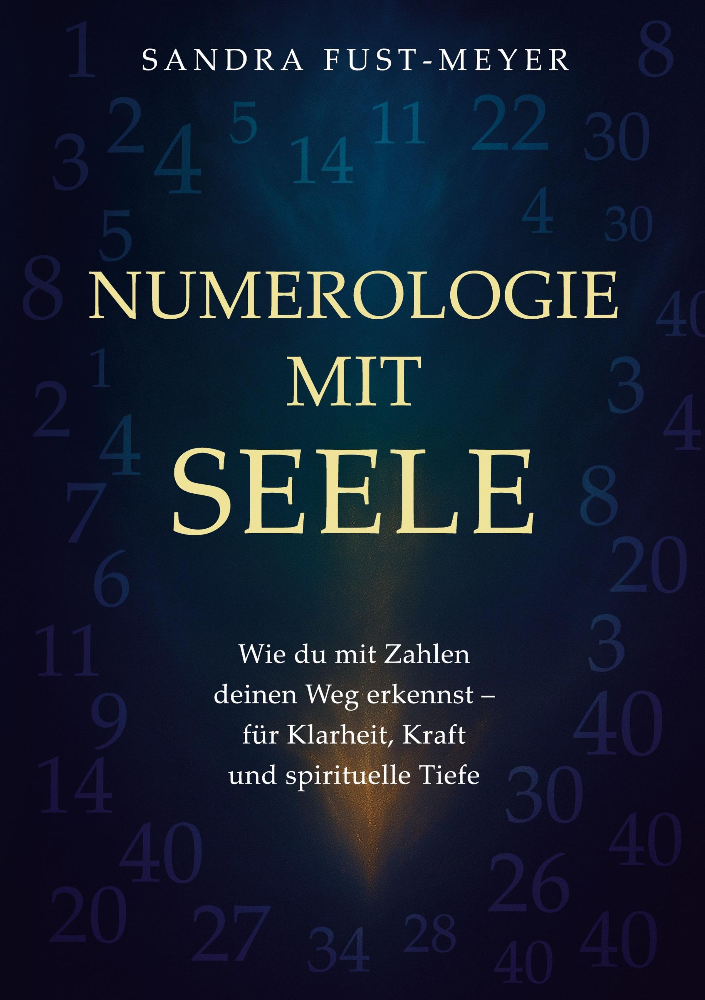 „Sandra Fust-Meyer, Numerologie mit Seele. Wie du mit Zahlen deinen Weg erkennst – für Klarheit, Kraft und spirituelle Tiefe.“ Zahlen im Hintergrund., Buch
