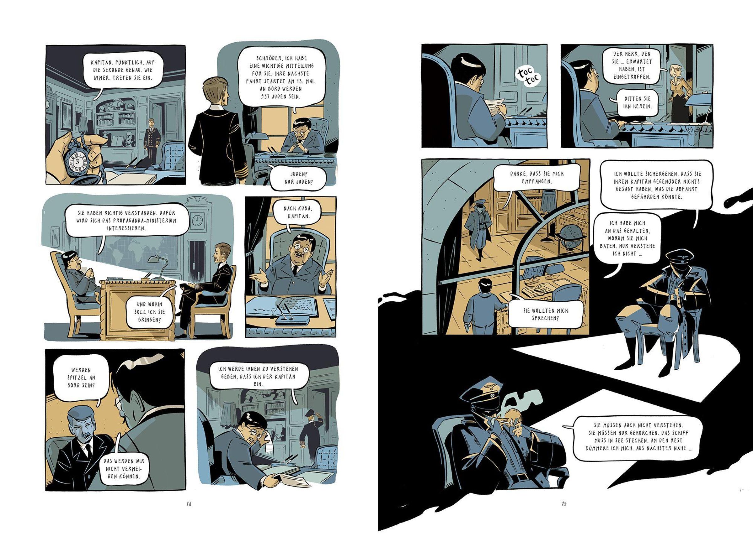 937 jüdische Passagiere verlassen mit der St. Louis den Hamburger Hafen - in der Hoffnung, in Kuba Zuflucht zu finden. Doch das Land weist sie ab. Ebenso die USA und Kanada. Kapitän Gustav Schröder setzt alles daran, einen sicheren Hafen zu finden. Doch wohin, wenn niemand sie aufnehmen will? Diese eindringliche Graphic Novel erzählt die wahre Geschichte von Flucht, Mut und Menschlichkeit: atmosphärisch, historisch fundiert und bewegend. Mit einem Zeitzeugeninterview eines Überlebenden und einem Vorwort des Shoah-Museums in Rom. Ein starkes Stück Erinnerungskultur, das zeigt, was Zivilcourage bedeutet - damals wie heute. Und warum es so wichtig ist hinzusehen.