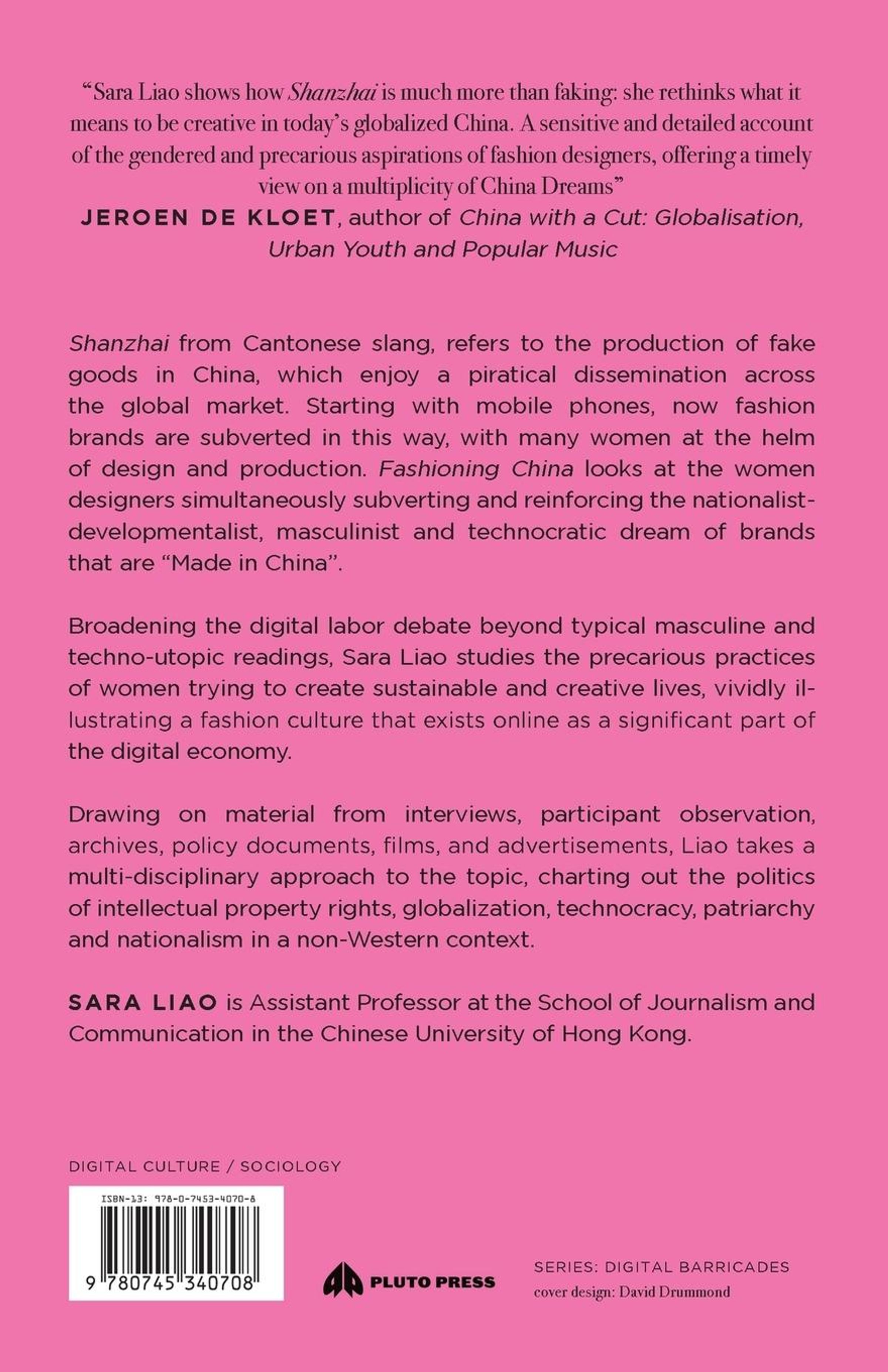 'Shanzhai' from Cantonese slang, refers to the production of fake goods in China, which enjoy an anti-authoritarian-like dissemination across the global market. Starting with mobile phones, now fashion brands are subverted in this way, with many women at the helm of design and production. Fashioning China looks at the women designers simultaneously subverting and reinforcing the nationalist-developmentalist, masculinist and technocratic dream of brands that are 'Made in China'.