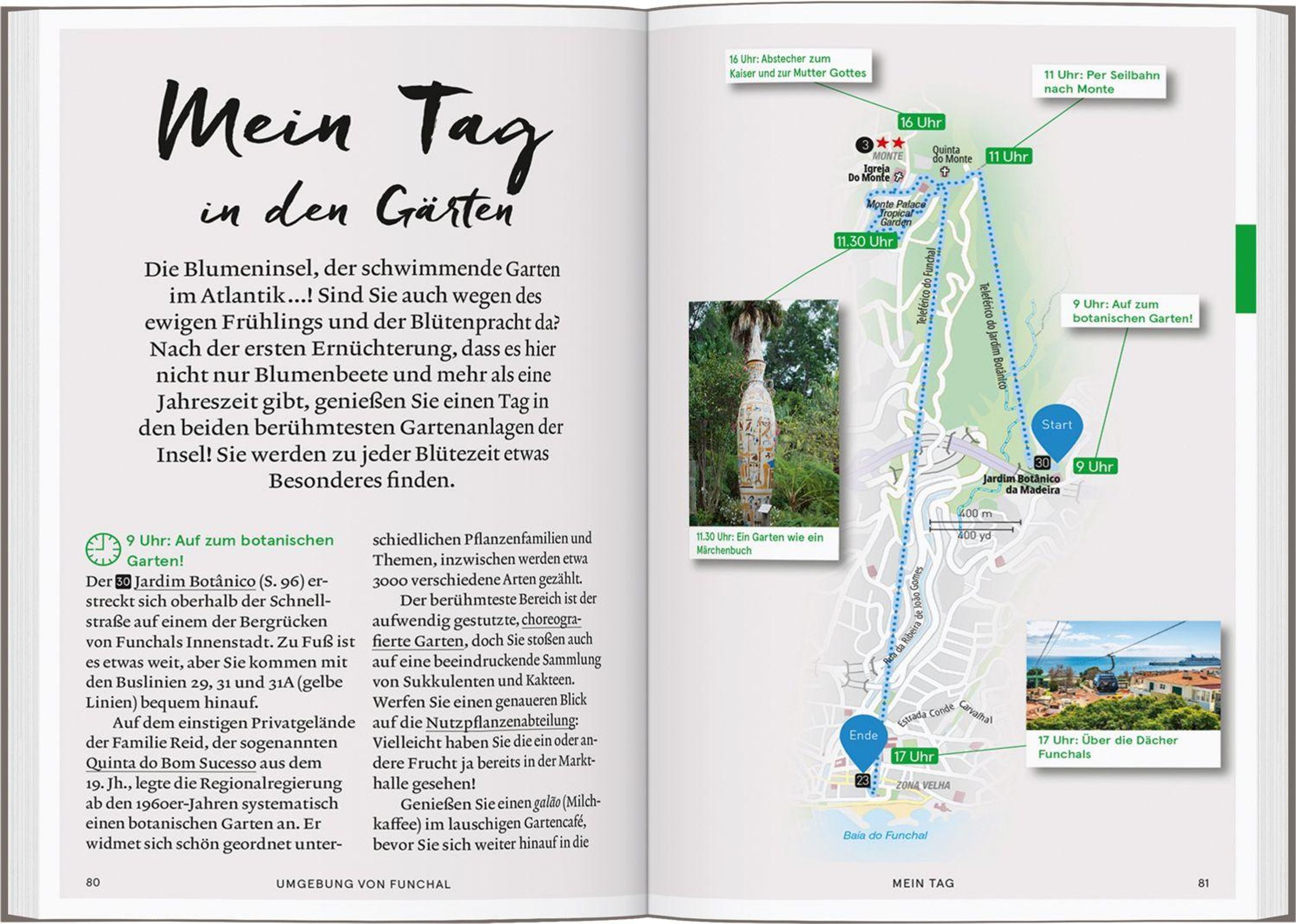 Als wenn er genau wüsste, was Ihnen gefällt - planen Sie morgens schnell und einfach den Tag mit dem Baedeker SMART Madeira Reiseführer. Starten Sie Ihren Tag mit einem frühen Ausflug in die Berge zum Pico do Arieiro. Im Bereich der höchsten Gipfel wird Sie der Ausblick auf Madeiras Schönheit einfach überwältigen. Vor dem großen Touristenandrang sind Sie schon wieder auf dem Weg hinunter nach Ribeiro Frio, schnüren sich Ihre Wanderschuhe und tauchen tief ein in den weltberühmten Lorbeerwald von Madeira. Haben Sie zwischendrin Lust auf eine 'kleine Pause? Das bekannte Lokal Ribeiro Frio gegenüber der Forellenzucht bietet eine reichhaltige Auswahl und schöne Sitzplätze im Garten. Oder wollen Sie lieber das schöne Wetter am Meer genießen? Verbringen Sie einen Tag in Porto Moniz, dem beliebtesten Badeort der Insel. Springen Sie zwischen schwarzen Lavafelsen in kühles, glasklares Wasser. Neben allen klassischen Sehenswürdigkeiten halten wir Tipps für ganz besondere Urlaubstage für Sie bereit. Kehren Sie beispielsweise in die Weinkellerei 'Blandy's Wine Lodge' ein und genießen Sie einen Tropfen des wertvollen, goldenen Madeiraweins. Mit unseren inspirierenden Ideen sorgen wir für eine entspannte Urlaubsplanung und machen Ihren Madeira-Urlaub zum einmaligen Erlebnis.