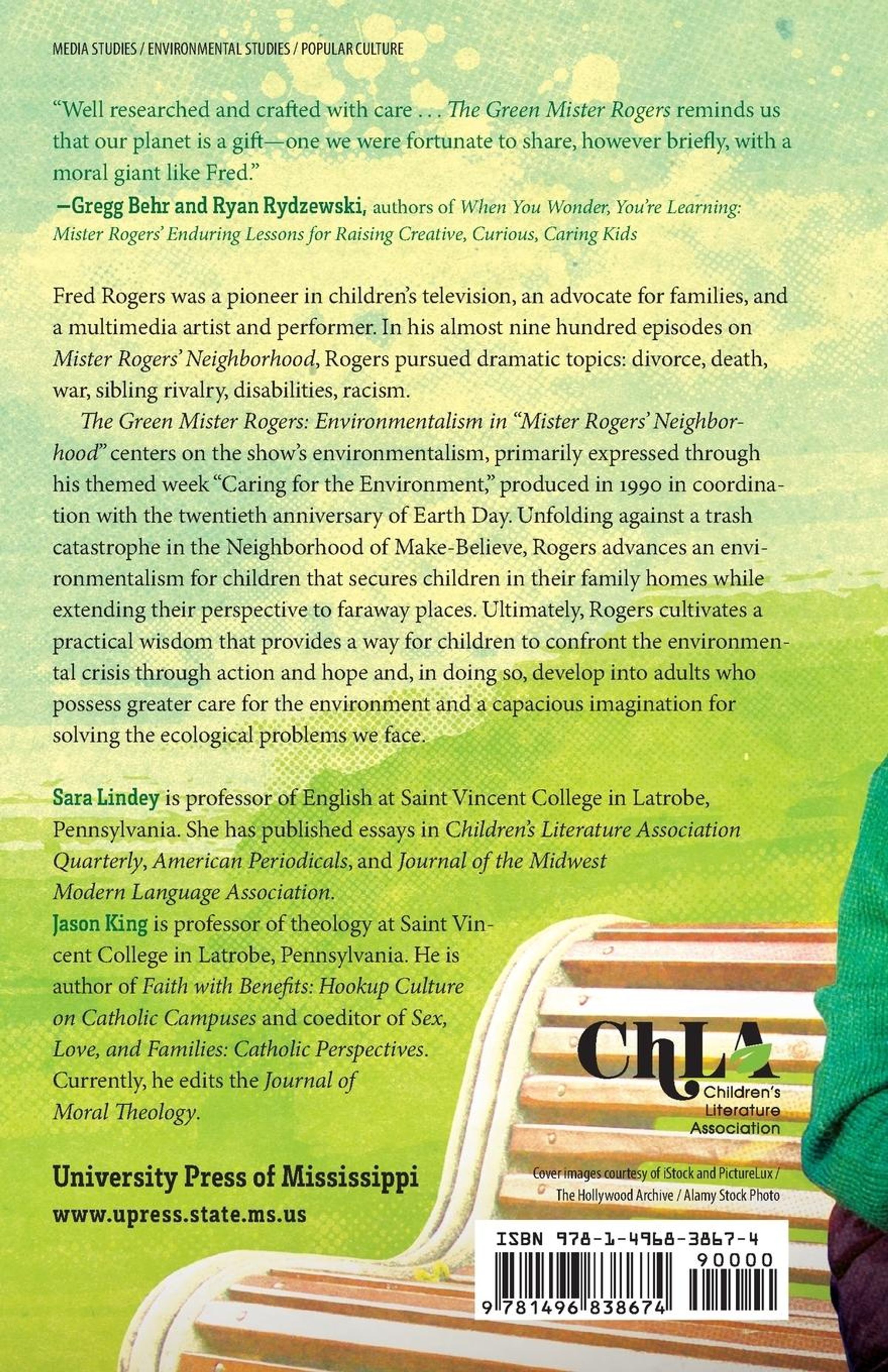 Fred Rogers was an international celebrity. He was a pioneer in children's television, an advocate for families, and a multimedia artist and performer. He wrote the television scripts and music, performed puppetry, sang, hosted, and directed Mister Rogers' Neighborhood for more than thirty years. In his almost nine hundred episodes, Rogers pursued dramatic topics: divorce, death, war, sibling rivalry, disabilities, racism. Rogers' direct, slow, gentle, and empathic approach is supported by his superior emotional strength, his intellectual and creative courage, and his joyful spiritual confidence. The Green Mister Rogers: Environmentalism in "Mister Rogers' Neighborhood" centers on the show's environmentalism, primarily expressed through his themed week "Caring for the Environment," produced in 1990 in coordination with the twentieth anniversary of Earth Day. Unfolding against a trash catastrophe in the Neighborhood of Make-Believe, Rogers advances an environmentalism for children that secures children in their family homes while extending their perspective to faraway places, from the local recycling center to Florida's coral reef. Rogers depicts animal wisdom and uses puppets to voice anxiety and hope and shows an interconnected world where each part of creation is valued, and love is circulated in networks of care. Ultimately, Rogers cultivates a practical wisdom that provides a way for children to confront the environmental crisis through action and hope and, in doing so, develop into adults who possess greater care for the environment and a capacious imagination for solving the ecological problems we face.