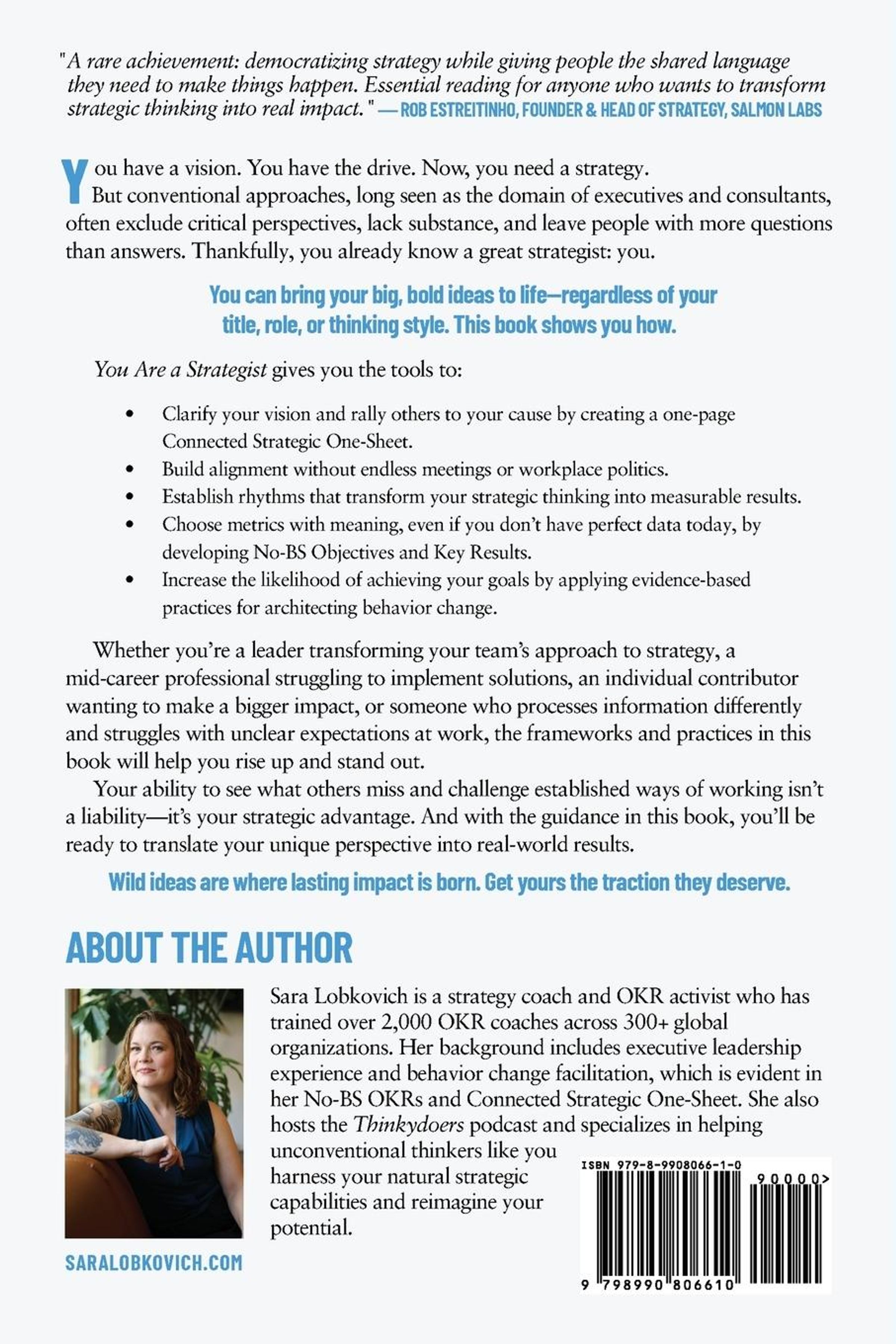 Author Sara Lobkovich has trained over 2, 000 OKR coaches across 300+ organizations globally, including Fortune 500 companies. Drawing from her executive leadership experience and board-certified health coaching background, she brings a uniquely human-centered approach to strategic planning that works for everyone-not just those with traditional business backgrounds.