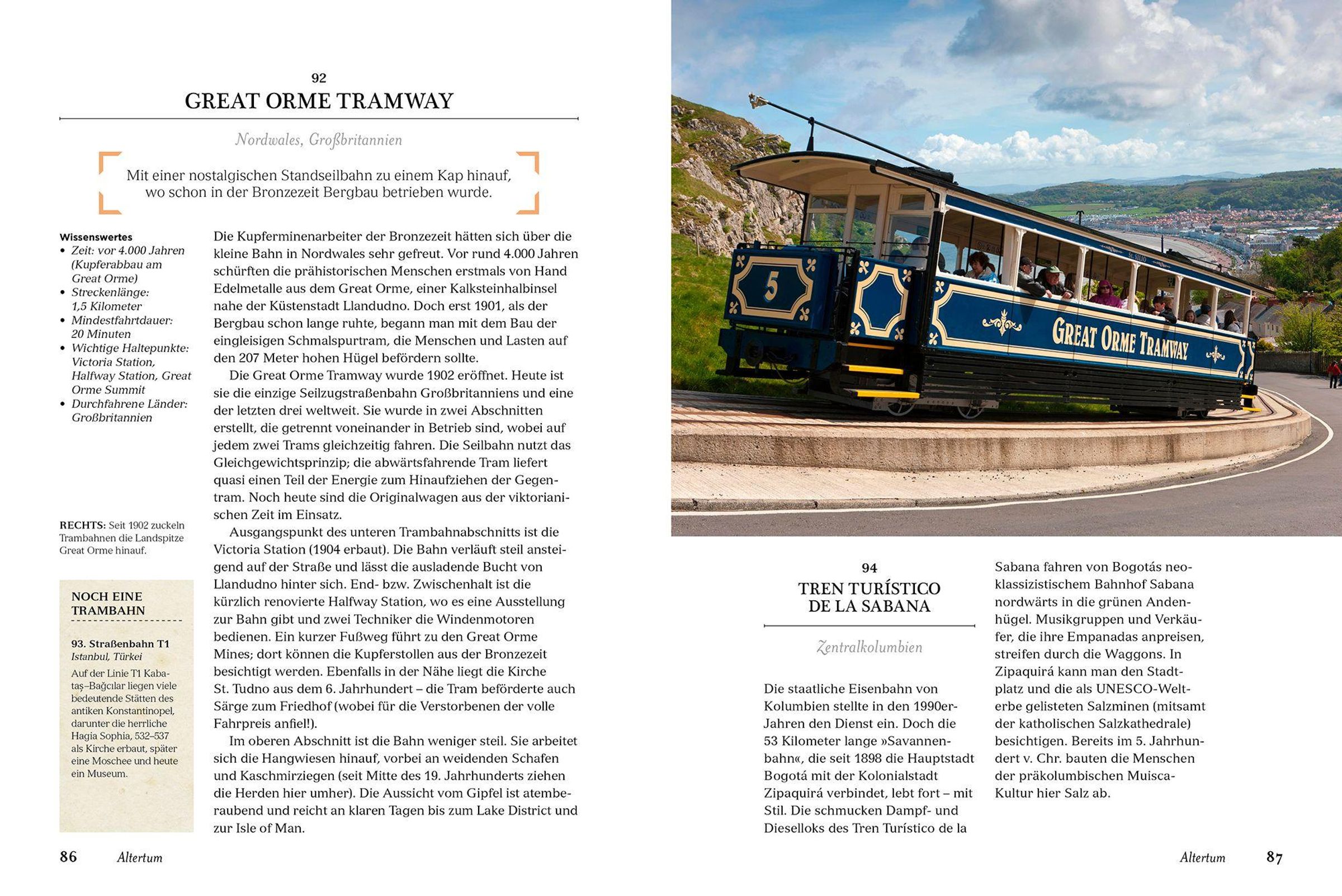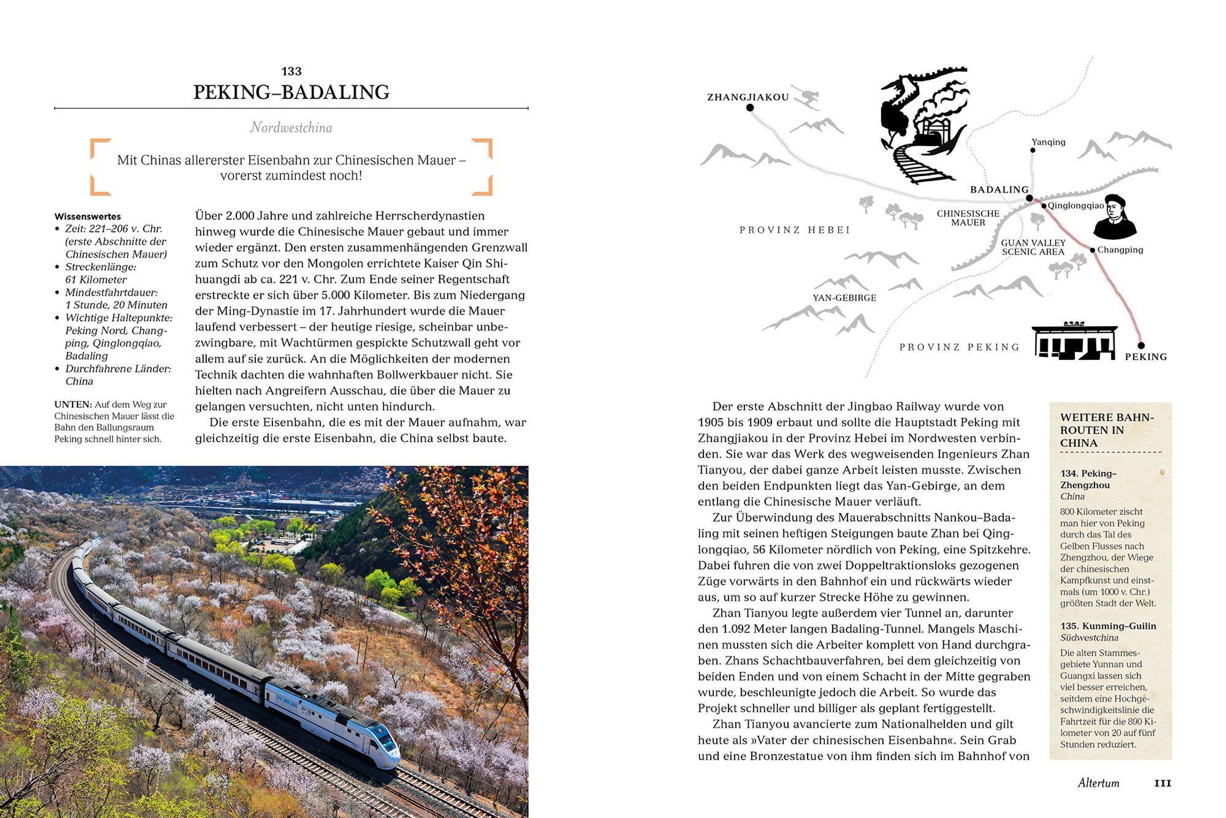 Mit dabei: der Glacier Express, der Blue Train, die Lhasa-Bahn, die Eiserne Seidenstraße - und eindrucksvolle Nachtzugverbindungen. Jede Route enthält Infos zu Fahrtdauer, Haltepunkten, Streckenverlauf und Sehenswürdigkeiten entlang der Linie. Ob kurzes Bahnabenteuer oder große Reise auf Gleisen - ein Buch zum Schmökern, Staunen und Losreisen.