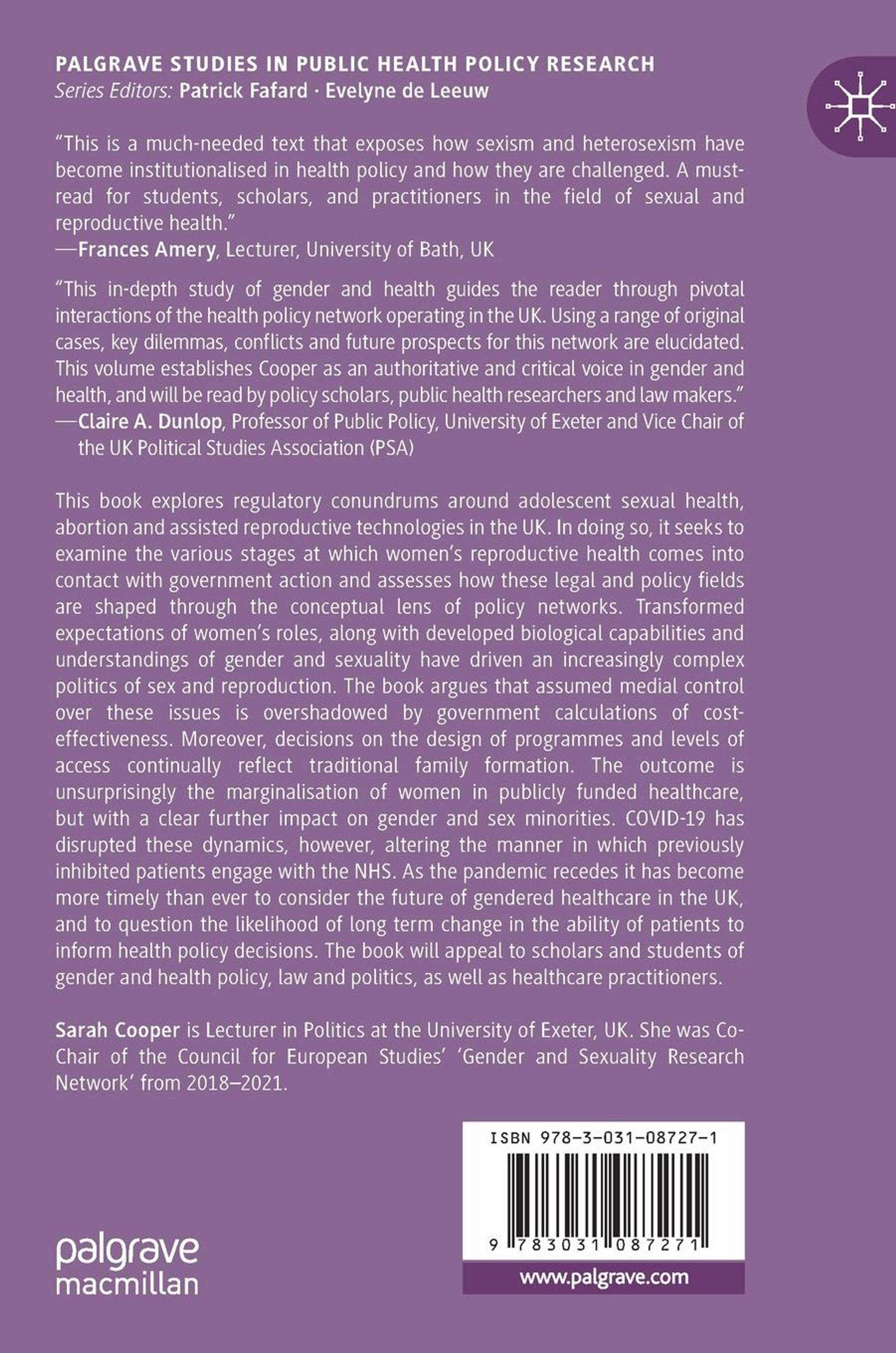 This book explores regulatory conundrums around adolescent sexual health, abortion and assisted reproductive technologies in the UK. In doing so, it seeks to examine the various stages at which womens reproductive health comes into contact with government action and assesses how these legal and policy fields are shaped through the conceptual lens of policy networks. Transformed expectations of womens roles, along with developed biological capabilities and understandings of gender and sexuality have driven an increasingly complex politics of sex and reproduction. The book argues that assumed medial control over these issues is overshadowed by government calculations of cost-effectiveness. Moreover, decisions on the design of programmes and levels of access continually reflect traditional family formation. The outcome is unsurprisingly the marginalisation of women in publicly funded healthcare, but with a clear further impact on gender and sex minorities. COVID-19 has disrupted these dynamics further, altering the manner in which previously inhibited patients engage with the NHS. As the pandemic recedes it has become more timely than ever to consider the future of gendered healthcare in the UK, and to question the likelihood of long term change in the ability of patients to inform health policy decisions. The book will appeal to scholars and students of gender and health policy, law and politics, as well as healthcare practitioners.