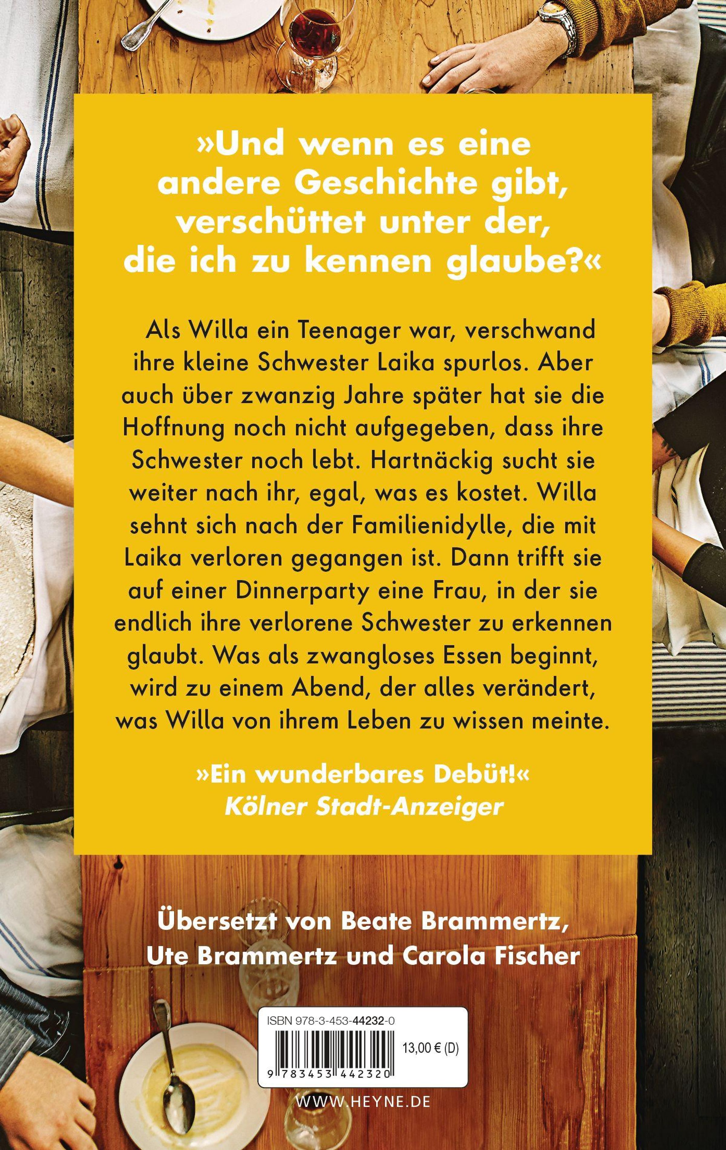 Als Willa ein Teenager war, verschwand ihre kleine Schwester Laika spurlos. Auch über zwanzig Jahre später hat Willa die Hoffnung nicht aufgegeben, dass Laika noch lebt. Hartnäckig sucht sie weiter nach ihr. Sie sehnt sich nach der Familienidylle, die mit Laika verloren zu sein scheint. Darüber vernachlässigt sie die Beziehungen zu den Menschen, die tatsächlich noch Teil ihres Lebens sind. Dann trifft sie auf einer Dinnerparty eine Frau, in der sie endlich ihre verlorene Schwester zu erkennen glaubt. Was als zwangloses Essen beginnt, wird zu einem denkwürdigen Abend, der alles verändert, was Willa von ihrem Leben zu wissen meinte.