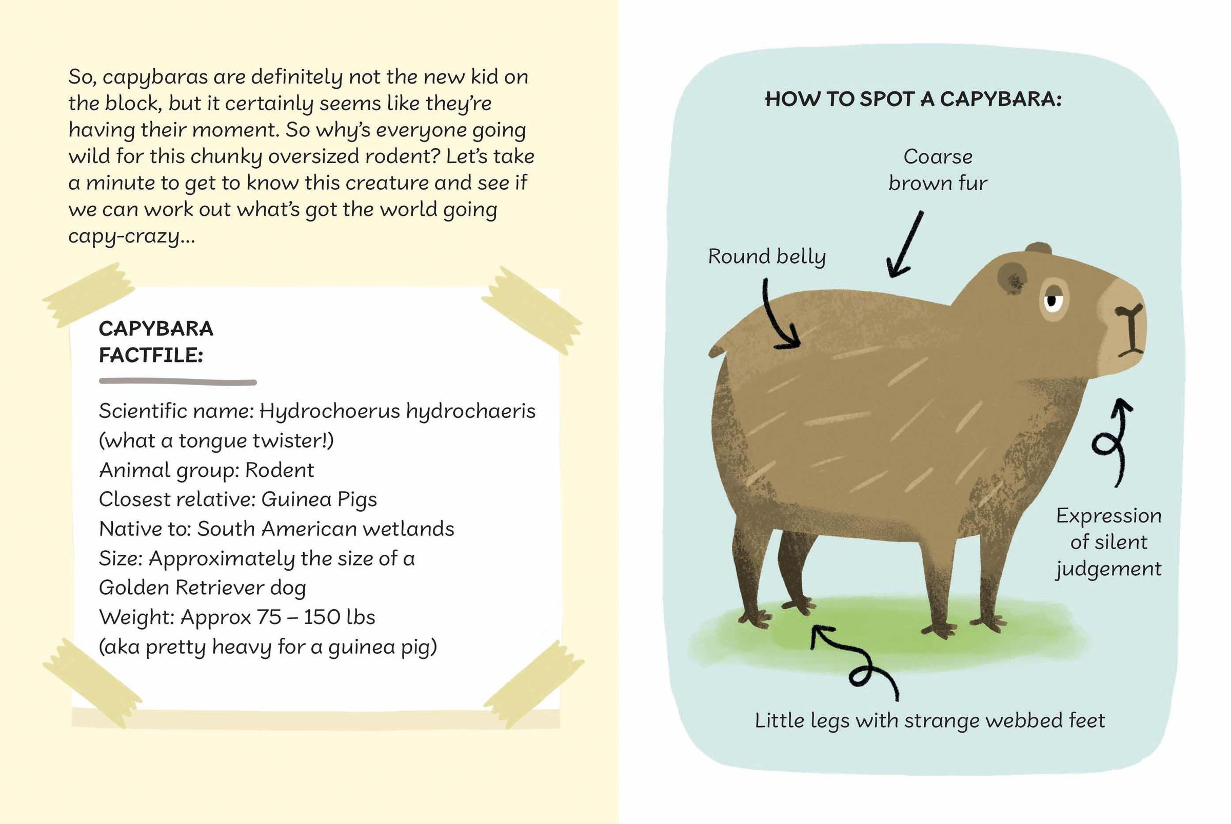 In Don't Worry, Be Capy , you'll learn all about these adorable, characterful creatures and their approach to life. From hanging out with their friends to eating their fruit and veg---or rather berries, grasses, and reeds---they know how to live well.