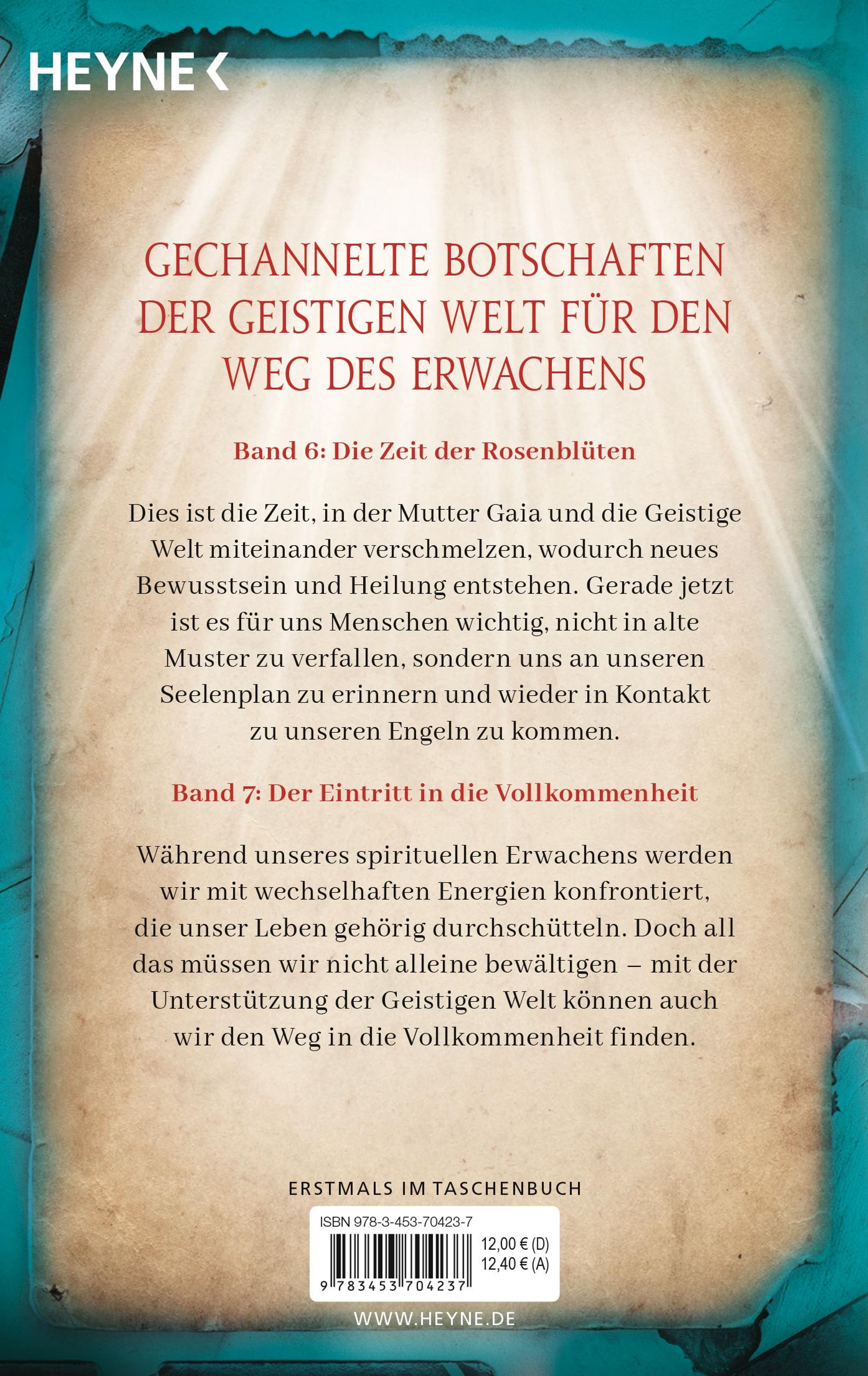Band 6 - Die Zeit der Rosenblüten: Dies ist die Zeit, in der Mutter Gaia und die Geistige Welt miteinander verschmelzen, wodurch neues Bewusstsein und Heilung entsteht. Gerade jetzt ist es für uns Menschen wichtig, nicht wieder in alte Muster zu verfallen, sondern uns an unseren Seelenplan zu erinnern und wieder in Kontakt zu unseren Engeln zu kommen. Hierfür sind die gechannelten Botschaften in diesem Band eine unschätzbar wertvolle Hilfe.