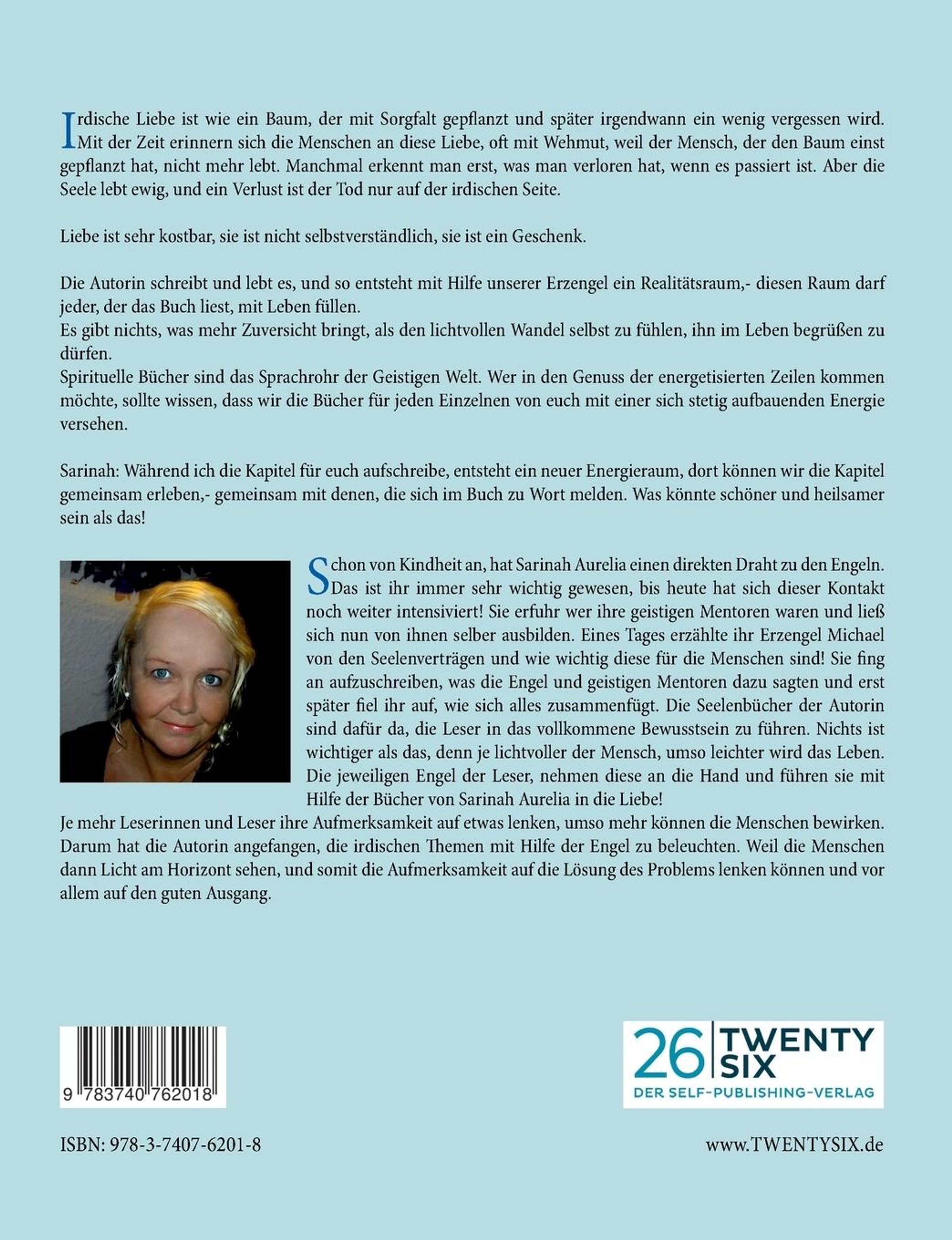 Die Autorin schreibt und lebt es, und so entsteht mit Hilfe unserer Erzengel ein Realitätsraum,- diesen Raum darf jeder, der das Buch liest, mit Leben füllen. Es gibt nichts, was mehr Zuversicht bringt, als den lichtvollen Wandel selbst zu fühlen, ihn im Leben begrüßen zu dürfen. Spirituelle Bücher sind das Sprachrohr der Geistigen Welt. Wer in den Genuss der energetisierten Zeilen kommen möchte, sollte wissen, dass wir die Bücher für jeden Einzelnen von euch mit einer sich stetig aufbauenden Energie versehen.