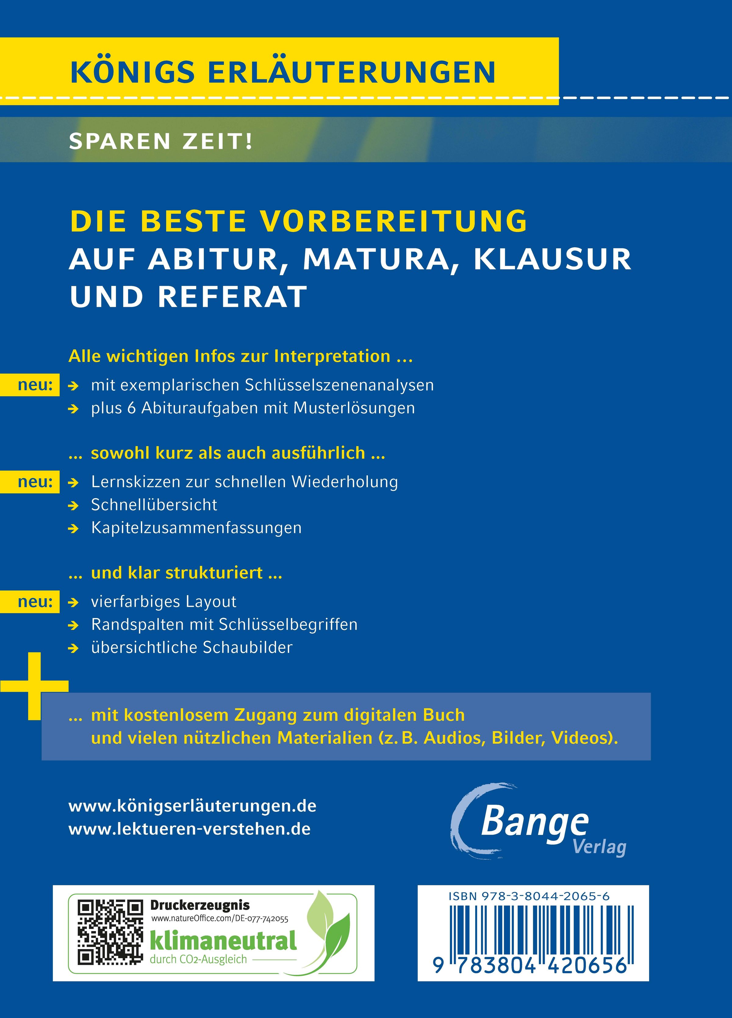 • mit Zusammenfassung, Inhaltsangabe, Charakterisierung, Szenenanalyse und Prüfungsaufgaben uvm.