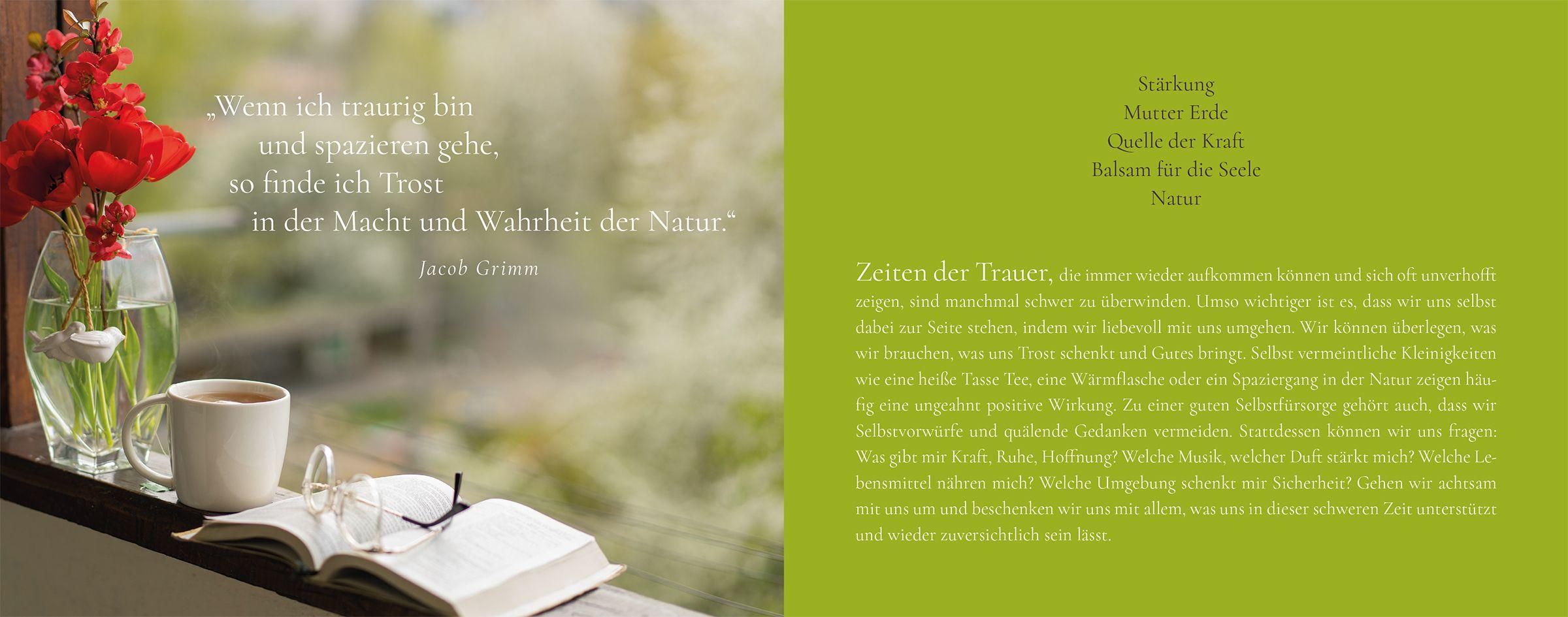 Wie soll man umgehen mit einem schmerzlichen Verlust? Wie ist es möglich, wieder eine Basis, eine Balance im Leben zu finden, die verletzte Seele zu heilen? Das Buch unterstützt bei der Verarbeitung der Trauer, führt den Leser mit großer Anteilnahme und Sensibilität durch alle Phasen des Abschiednehmens. Heilsame Gedanken und einfühlsame Tipps schaffen die Überwindung von Einsamkeit und Schwermut hin zu Vertrauen und Lebensmut. Die beiden Autorinnen geben Impulse und zeigen Möglichkeiten auf, wie man in der Trauer über den Verlust das Leben nicht vergisst.