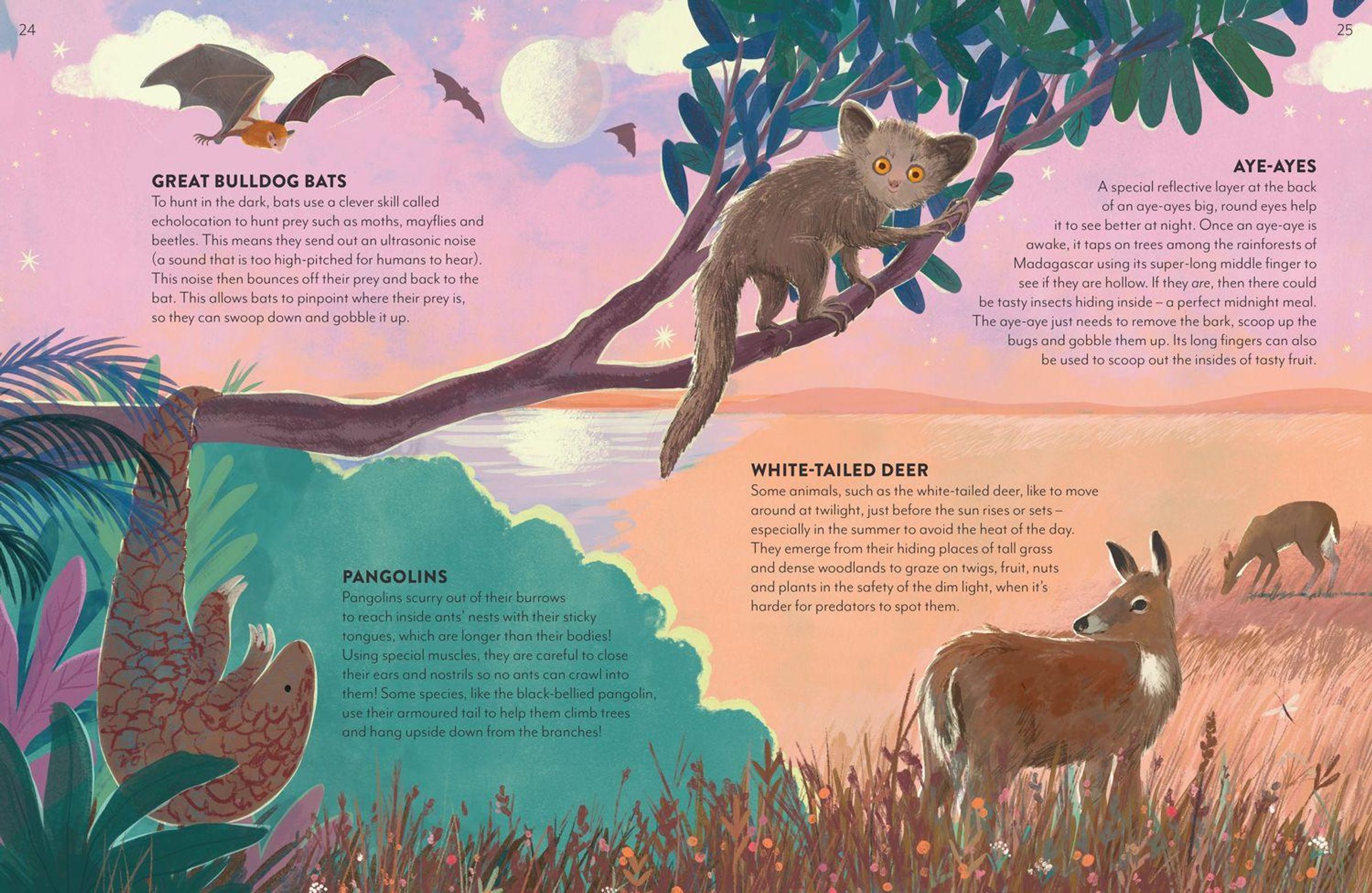 Discover animals from around the world that wake up when the Sun goes down. Find out how they hunt, play or find their way through the night before it's time to return to their homes at the start of a new day.