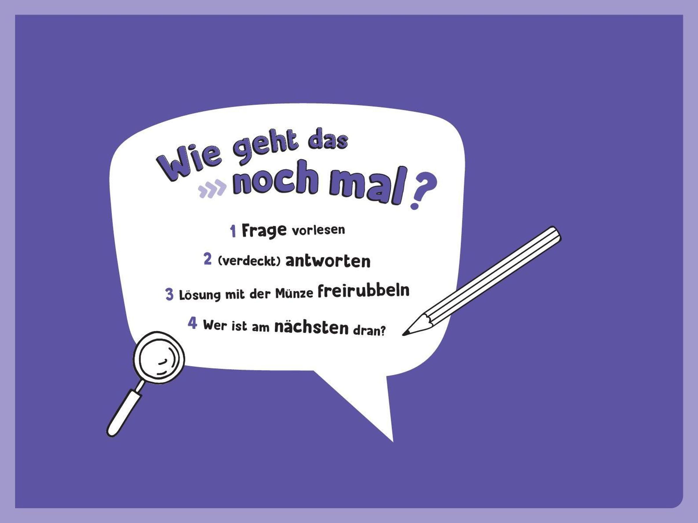Die Antworten sind alle unter Rubbellack verborgen, so hat niemand einen Vorteil. Jedem Block liegt außerdem unsere coole Schätz-mal!-Münze bei, mit der die Antworten easy und stilsicher freigerubbelt werden können.