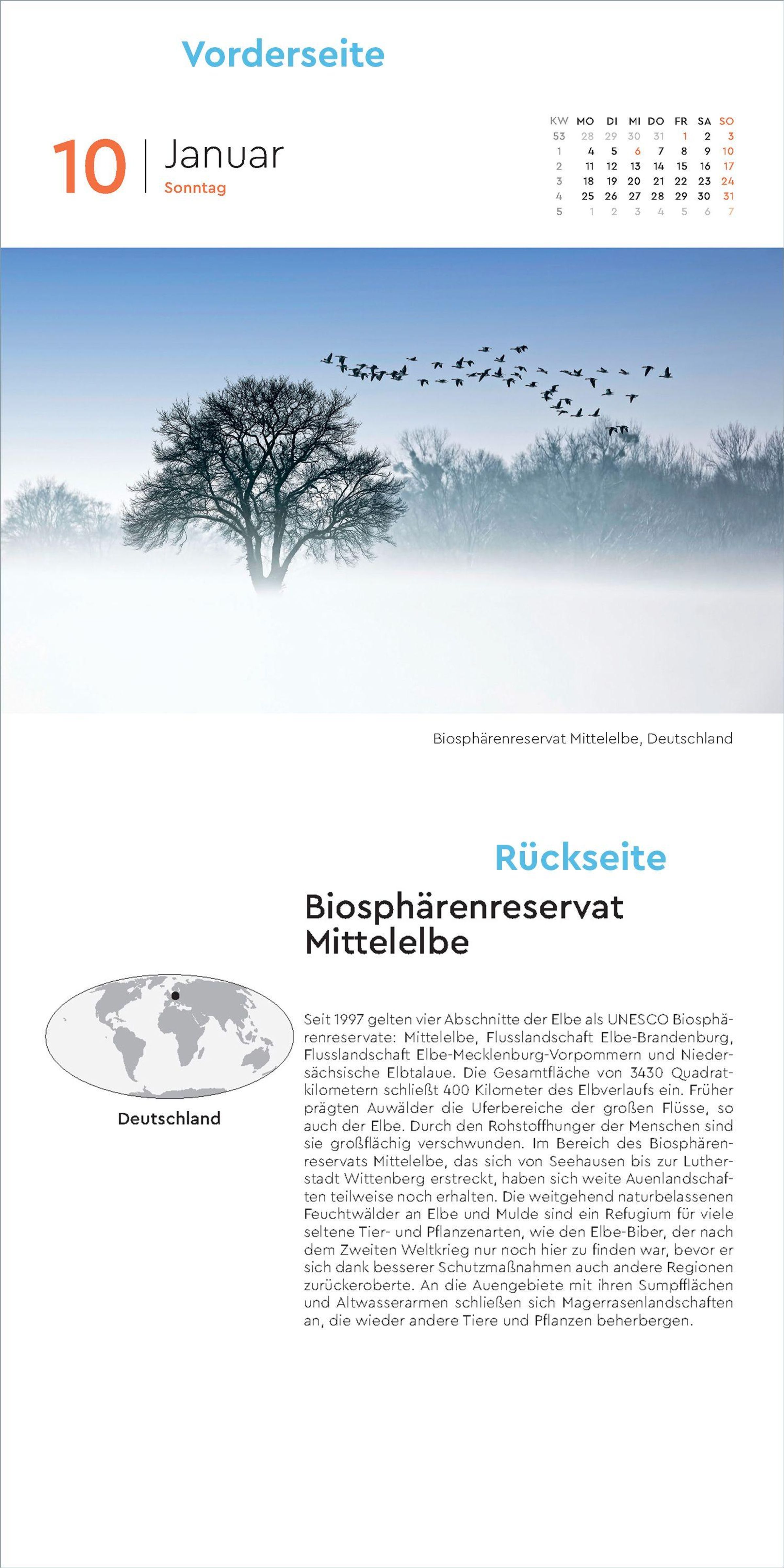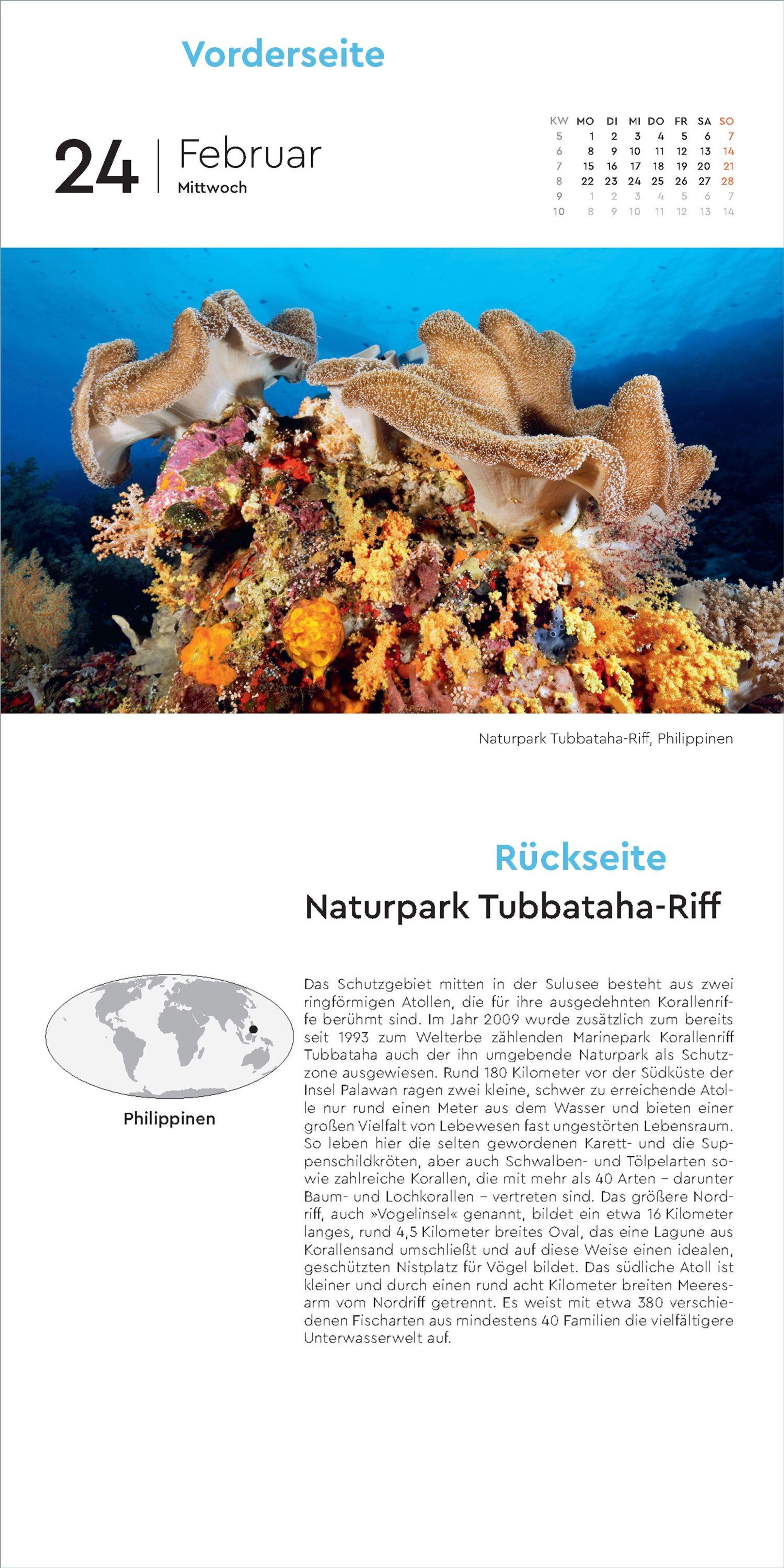 Dieser KUNTH Abreißkalender "Schätze der Natur" 2027 führt zu 365 traumhaften Orten in Bild und Text. Täglich gibt es Neues zu entdecken, und täglich illustrieren brillante Bilder ein neues Thema. Der Kalender von KUNTH präsentiert Tag für Tag in außergewöhnlichen Bildern und informativen Texten Naturerbestätten, Nationalparks und andere schützenswerte Paradiese und zeigt eindrücklich, worin ihre einzigartige Schönheit liegt und warum sie mit ihrer Flora und Fauna bewahrenswert sind.