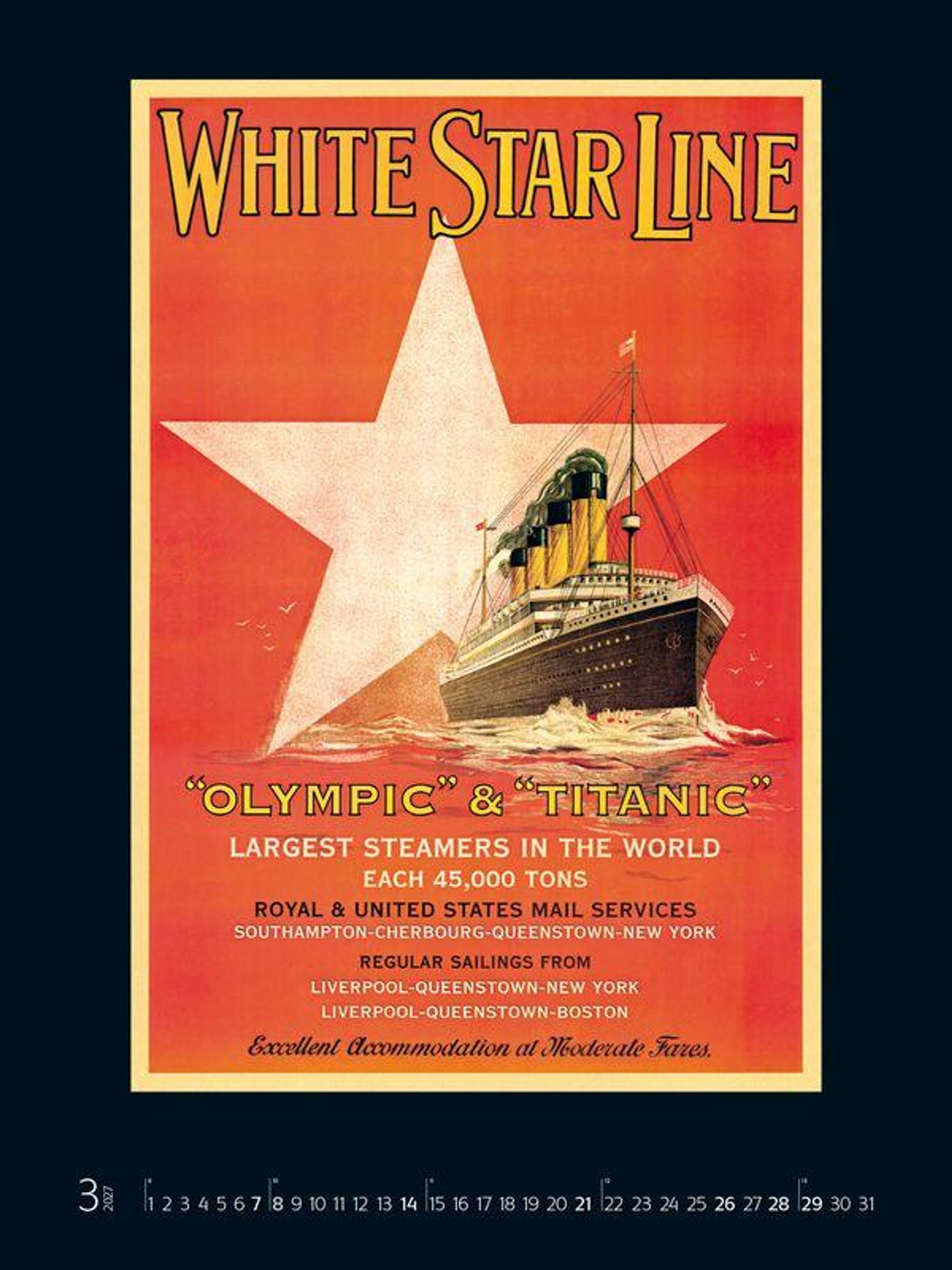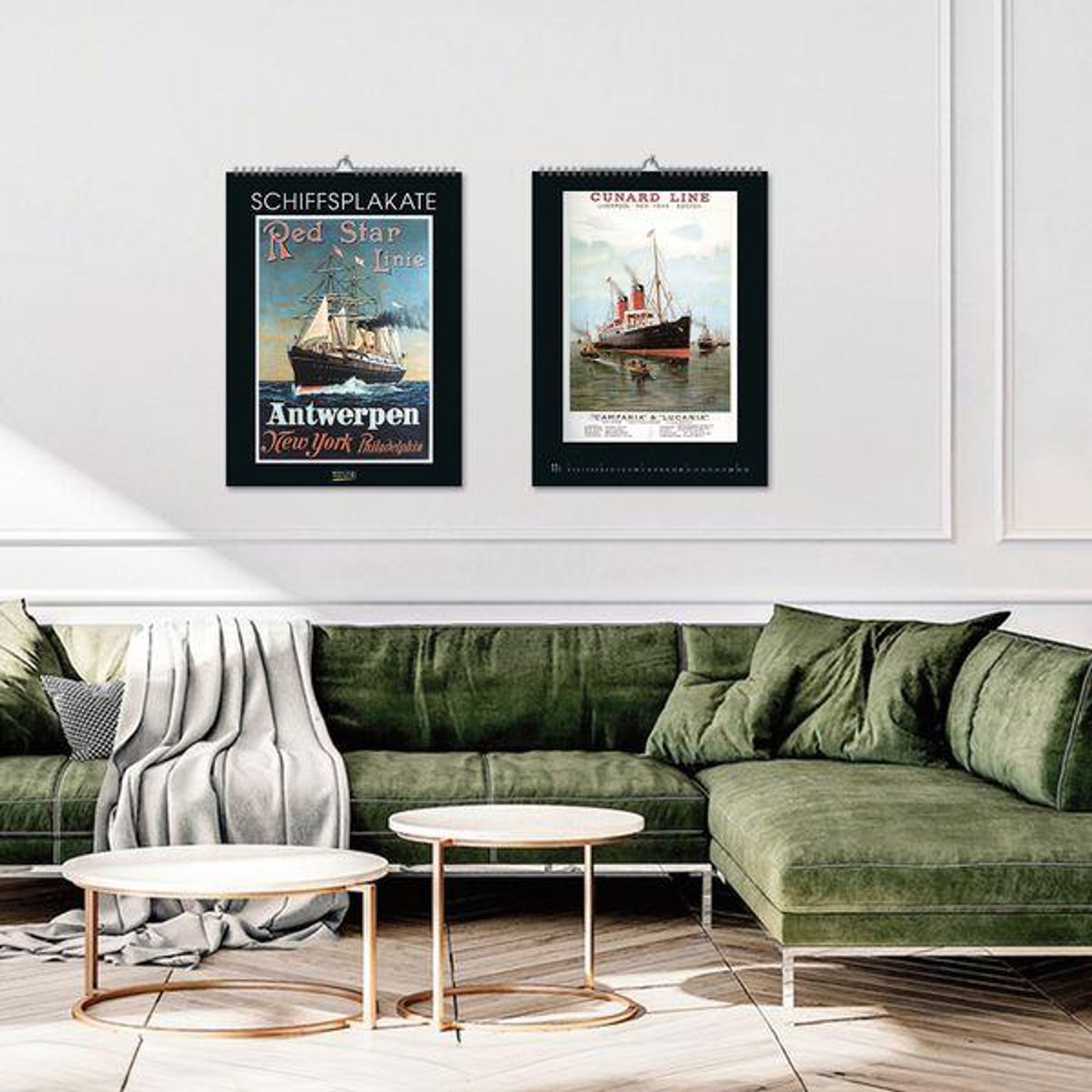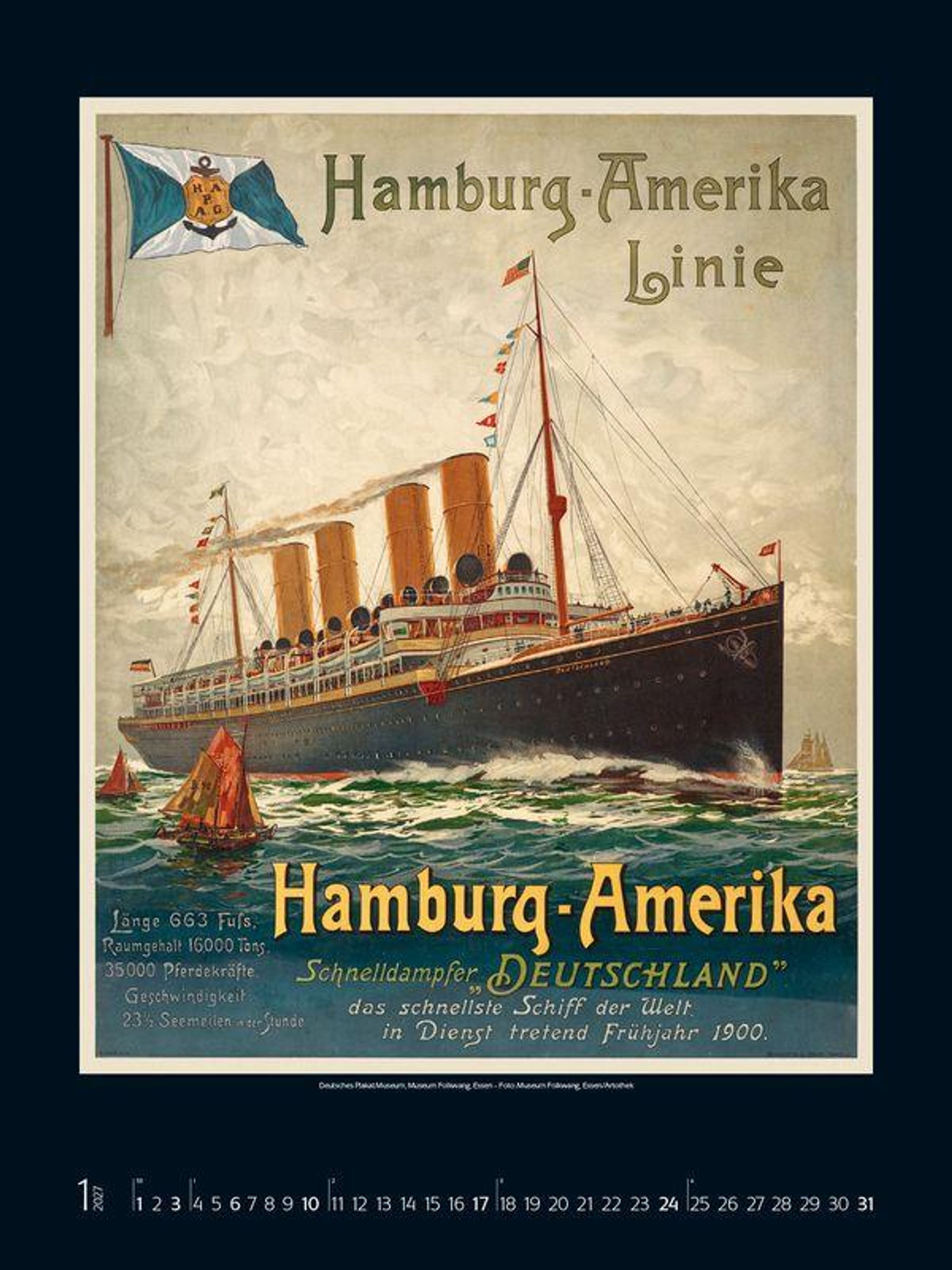 - Großer Kunstkalender. Wandkalender mit historischen vintage Plakaten für Schiff-Reisen. 48 x 64cm