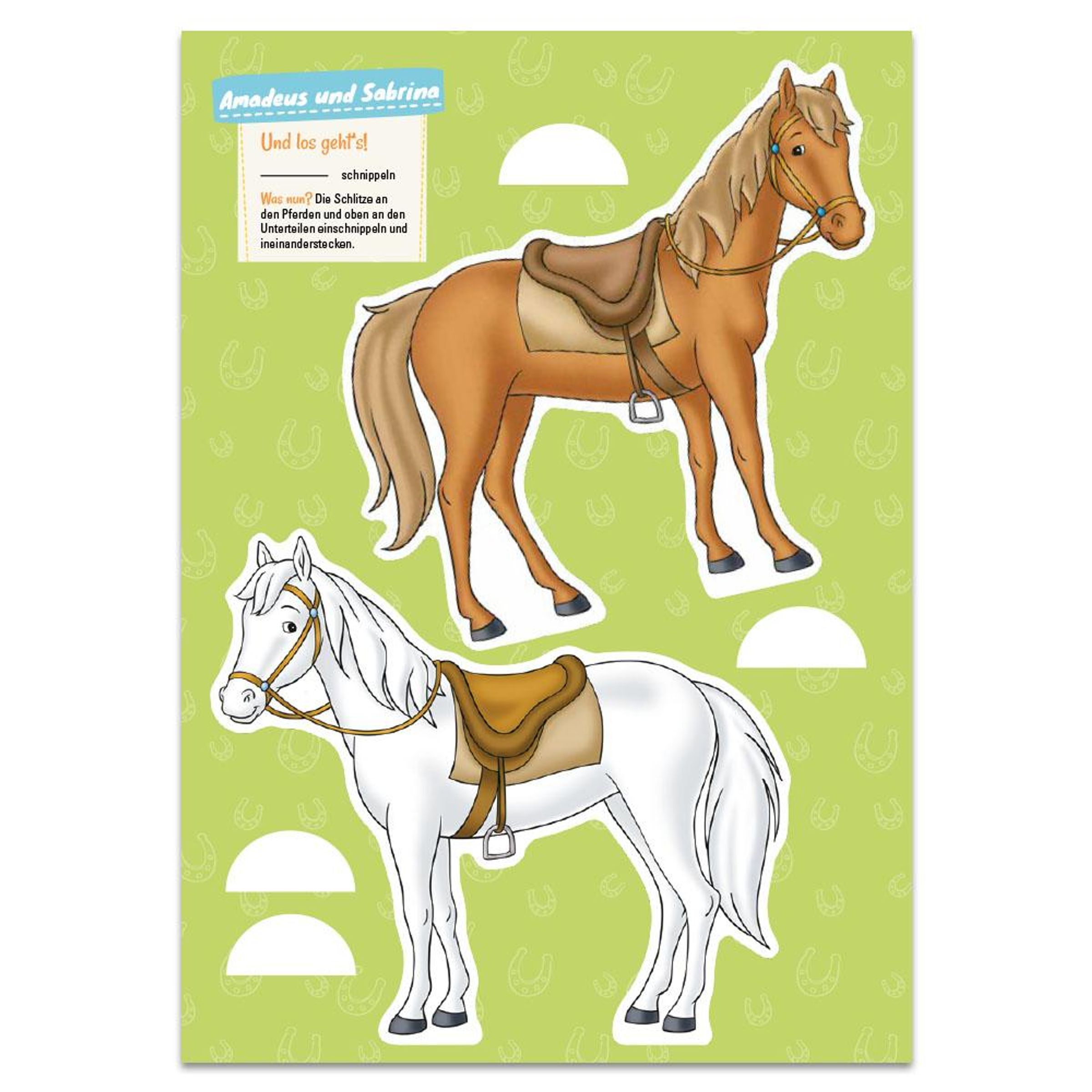 Hufeisen-Wimpelkette, coole Fingerpuppen, pferdestarke Turnierschleifen, tolle Türschilder und vieles mehr begeistern alle Pferdefreundinnen und sorgen für jede Menge Schnippel- und Klebespaß!