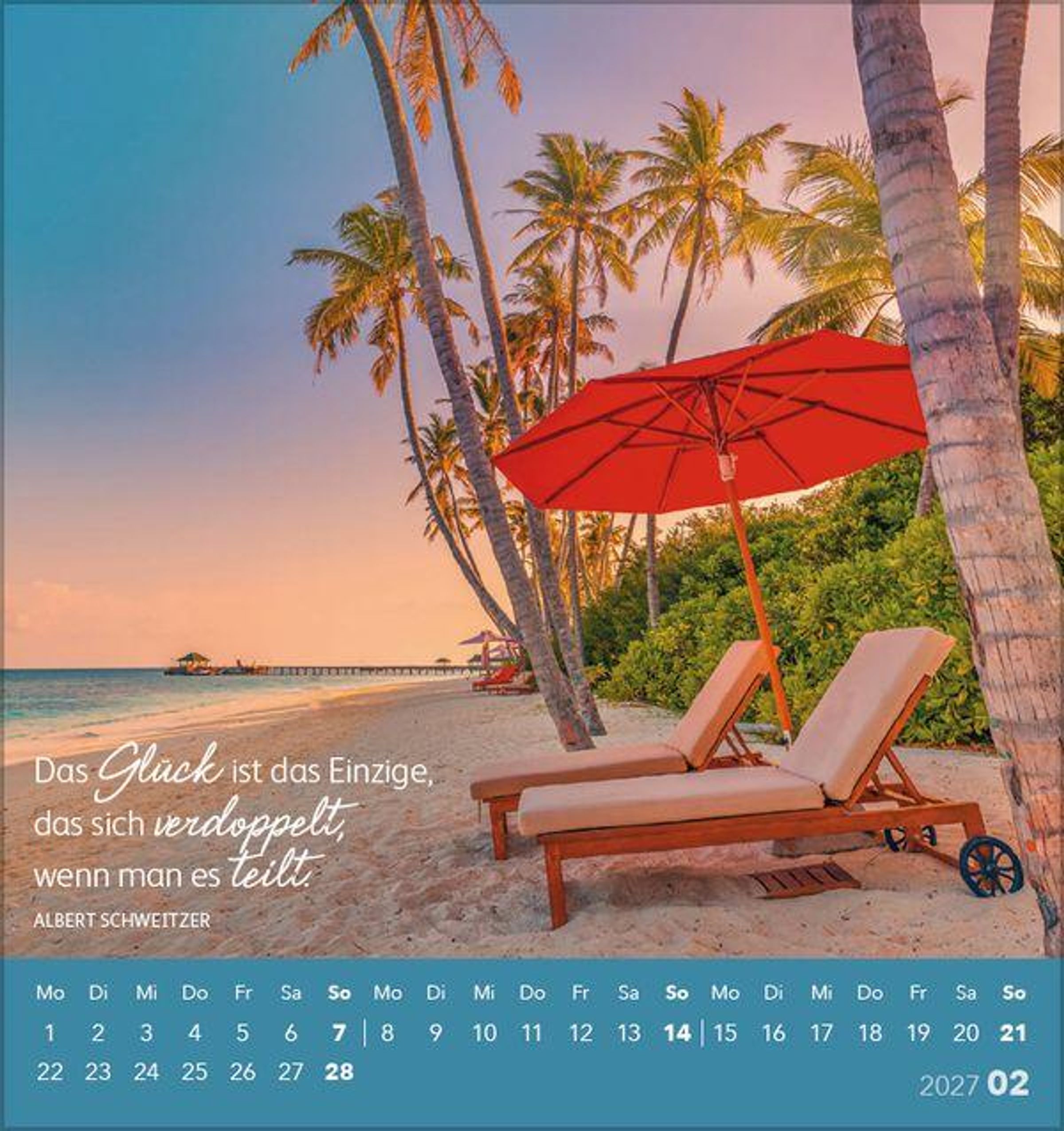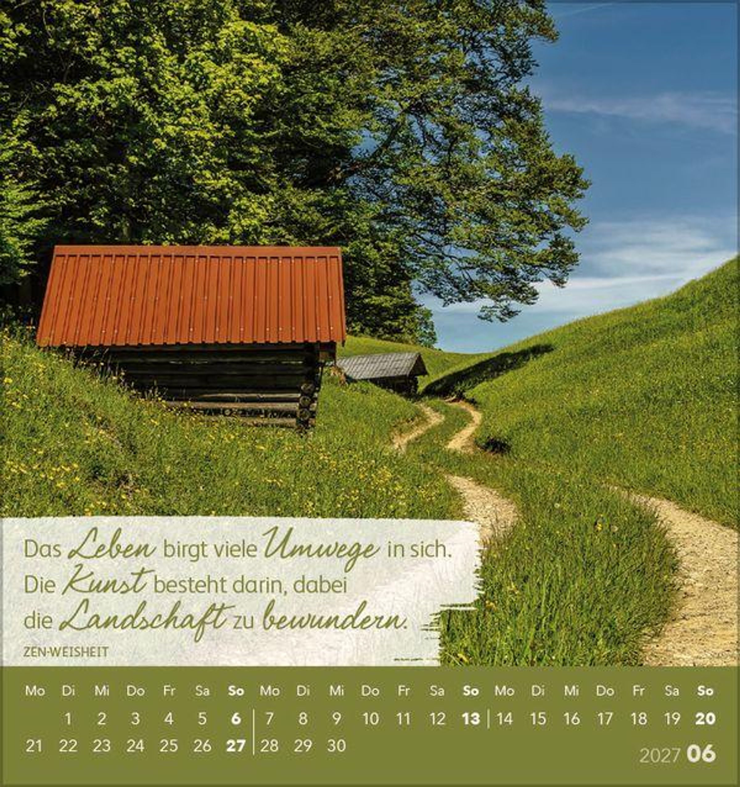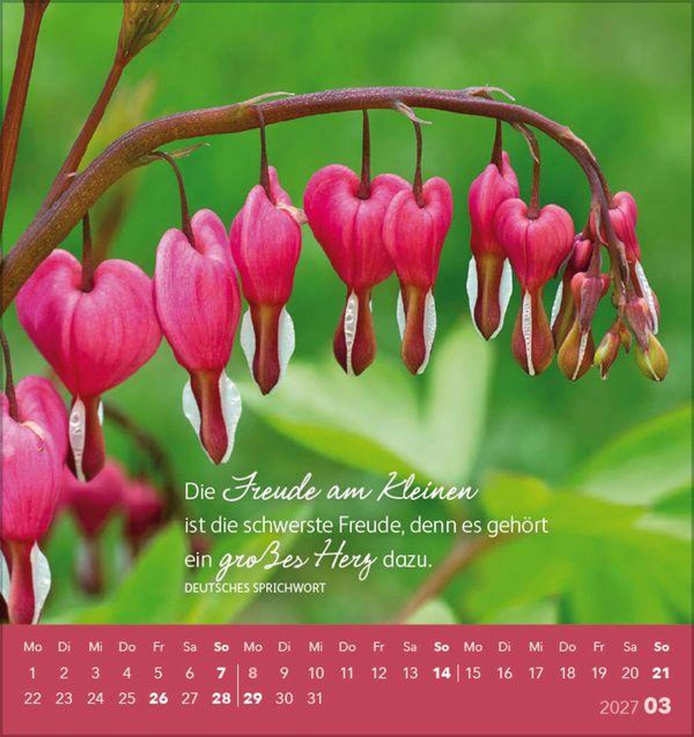 Jedes Kalenderblatt ist so gestaltet, dass es einfach abzutrennen ist. Somit können Sie jeden Monat eine Postkarte mit einem schönen Spruch versenden oder verschenken.