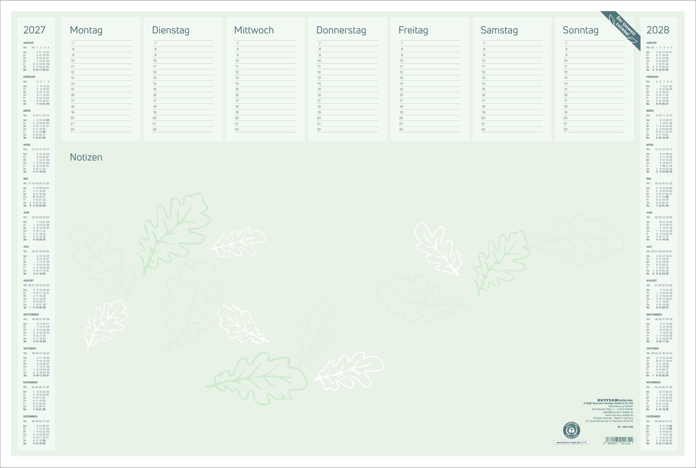 Schreibunterlage Blauer Engel 2027 (Kalender)