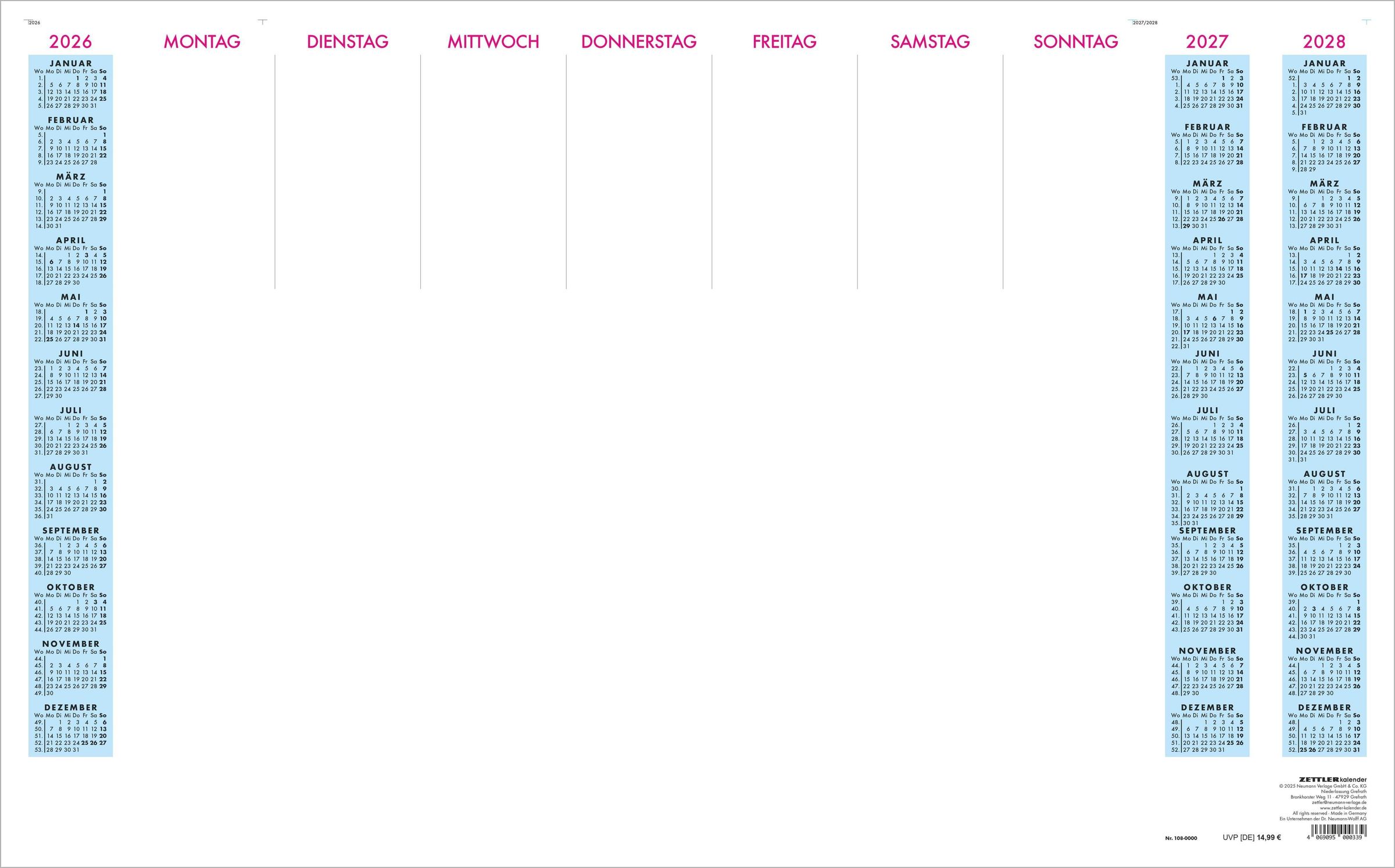 Die Zettler Schreibunterlage ohne Schutzleiste 2027 ist der ideale Begleiter für den Arbeitsalltag. Sie kombiniert einen praktischen Wochenplaner mit ausreichend Platz für Notizen und schützt gleichzeitig Ihren Schreibtisch.