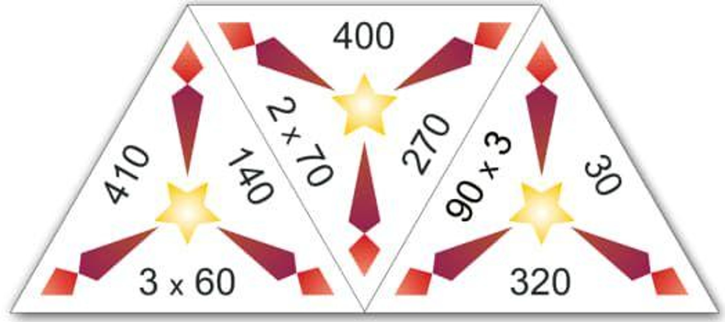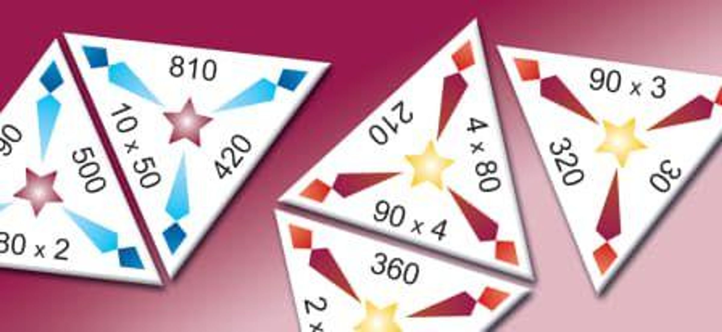 Doch aufgepasst: Es müssen immer alle drei Seiten der dreieckigen Spielkarten im Auge behalten werden! Die Dreiecke aus stabilem Karton werden so aneinandergelegt, dass Rechnung und Ergebnis zusammenpassen.