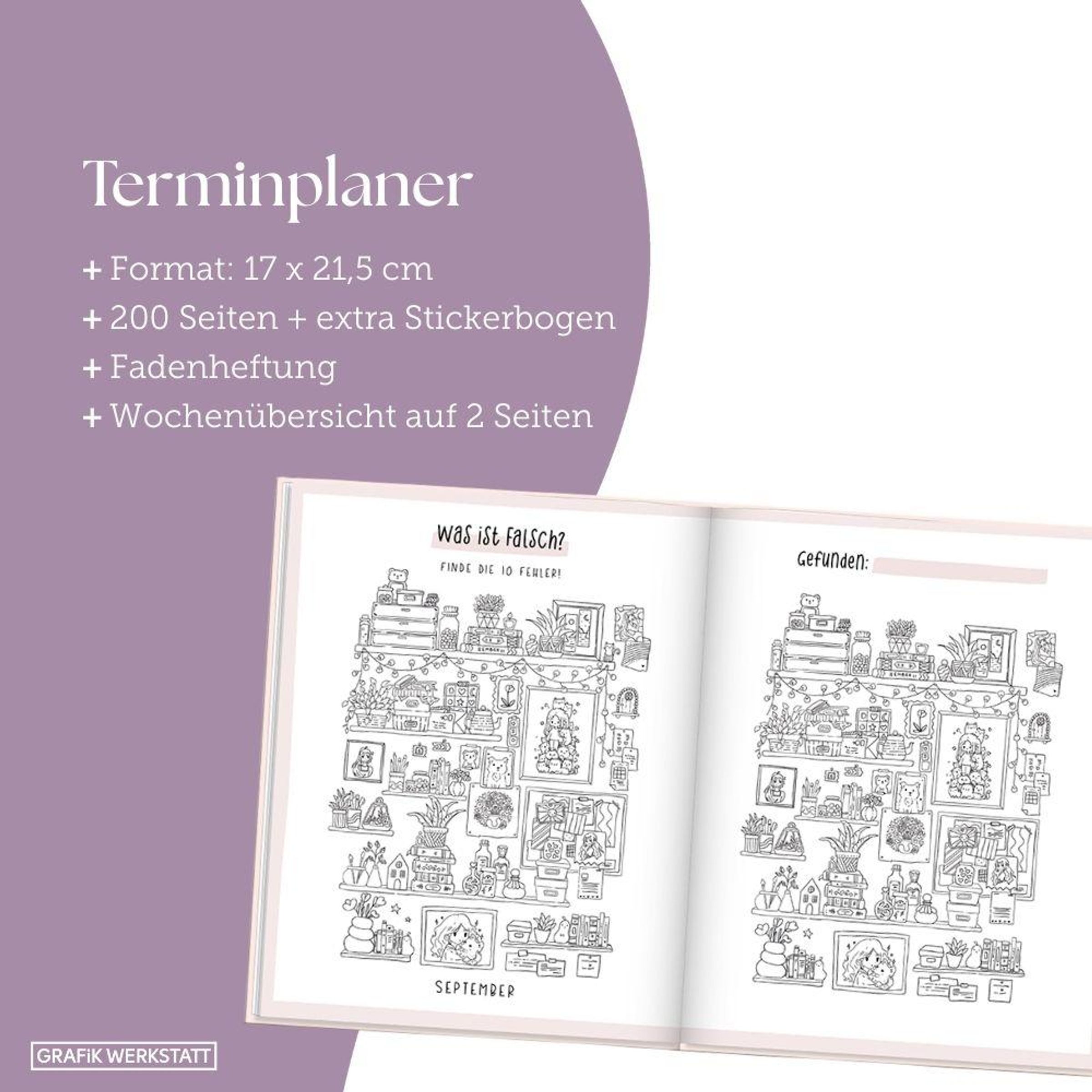 ¿ 200 Seiten + Stickerbogen bieten jede Menge Platz für Termine, Notizen und alles andere "Merk-Würdige"