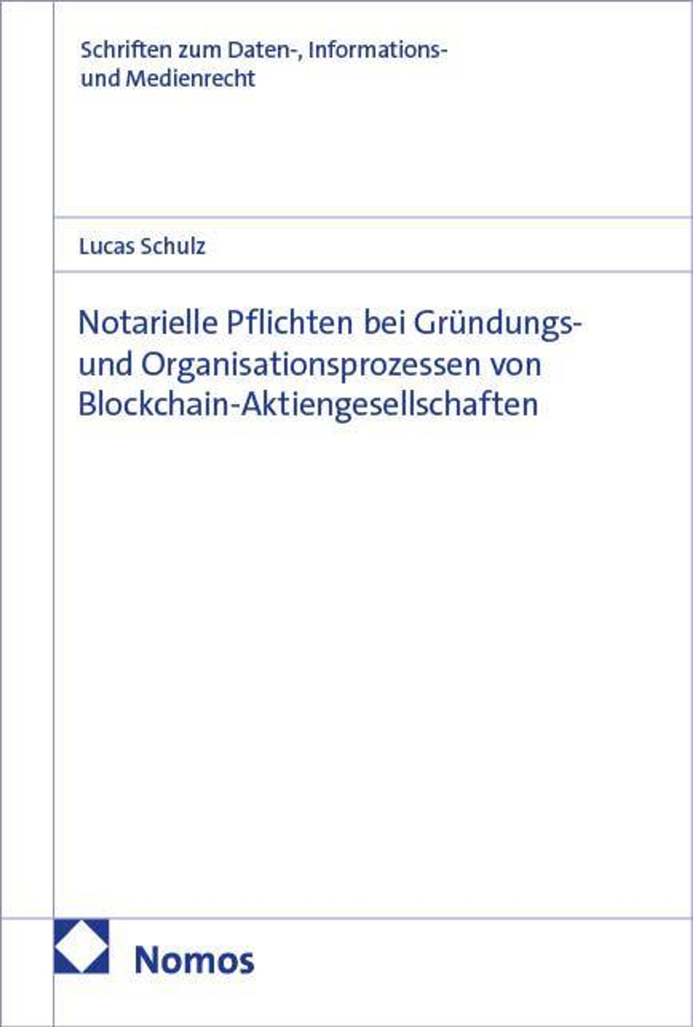 Blockchain-Technologie revolutioniert wirtschaftliche Prozesse - doch was bedeutet das für das Notariat? Leser: innen erhalten in dieser Dissertation eine fundierte Analyse der Auswirkungen dezentraler Technologien auf notarielle Pflichten bei der Gründung und Organisation von Aktiengesellschaften. Untersucht werden klassische Beurkundungs- und Prüfpflichten im Vergleich mit Konzepten wie Smart Contracts und Tokenisierung, ergänzt um kapitalmarkt- und datenschutzrechtliche Fragestellungen sowie Nachhaltigkeitsaspekte. Die Ergebnisse zeigen, dass die Blockchain-Technologie bei der Auslegung berufsrechtlicher Normen des Notariats besonders zu berücksichtigen ist.