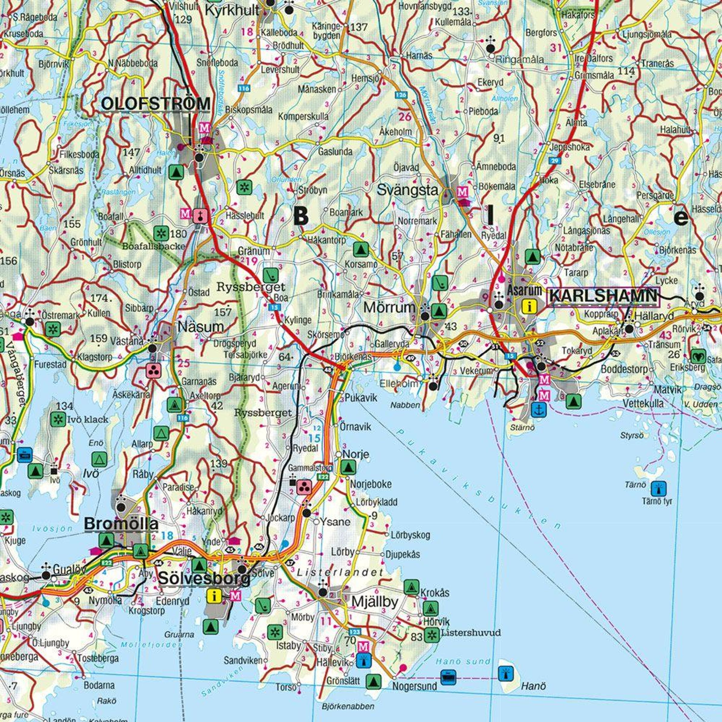 - Straßen- und Freizeitkarte Malmö - Helsingborg - Kalmar, Camping- und Stellplätze, Blatt 1