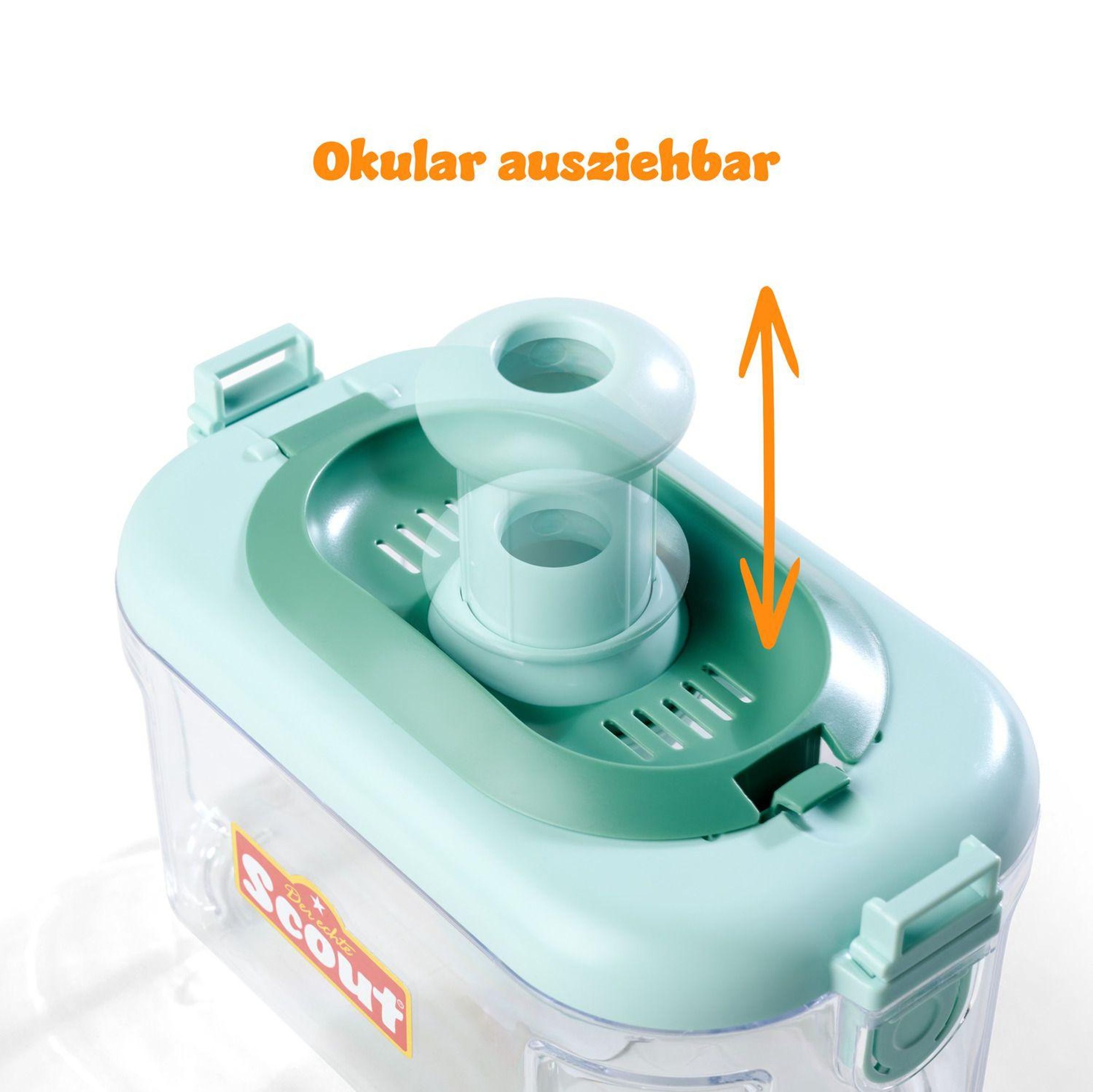 Käfer, Spinnen, Blätter oder Kristalle - mit dem Scout Lupenbecher von Simba können Kinder ab 3 Jahren ihre Umgebung auf völlig neue Weise erkunden. Der 15 cm große Becher lässt sich einfach aufklappen und mit dem mitgelieferten Tragegurt bequem überallhin mitnehmen - ob in den Garten, auf Wanderungen oder zur Wiese nebenan. Besonders clever: Das drehbare und ausziehbare Okular ermöglicht es, die Fundstücke aus unterschiedlichen Perspektiven zu betrachten. So wird jede Entdeckung zu einem echten Aha-Moment! Die beiliegende Pinzette erleichtert das Einsetzen von kleinen Objekten - ganz wie bei echten Wissenschaftlerinnen und Wissenschaftlern. Ein tolles Entdeckerspielzeug, das die Neugier weckt, das Beobachten fördert und Kinder spielerisch an Natur und Umwelt heranführt. Mit dem Scout Lupenbecher sind kleine Forscher immer bestens ausgerüstet.