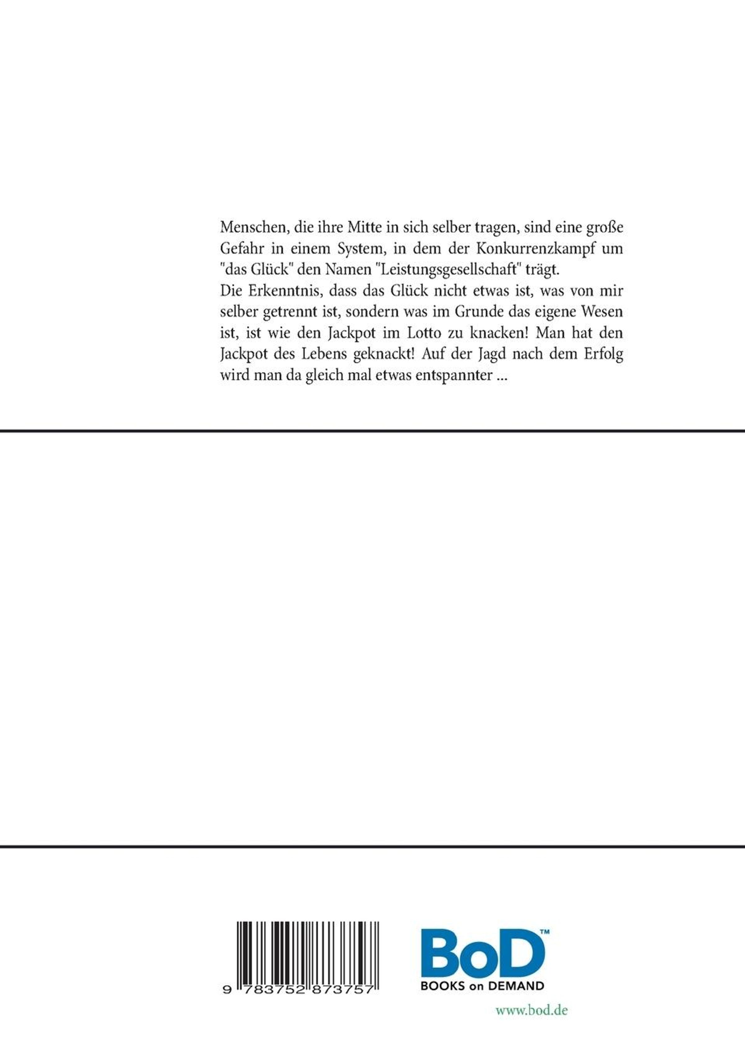 Menschen, die ihre Mitte in sich selber tragen, sind eine große Gefahr in einem System, in dem der Konkurrenzkampf um "das Glück" den Namen "Leistungsgesellschaft" trägt. Die Erkenntnis, dass das Glück nicht etwas ist, was von mir selber getrennt ist, sondern was im Grunde das eigene Wesen ist, ist wie den Jackpot im Lotto zu knacken! Man hat den Jackpot des Lebens geknackt! Auf der Jagd nach dem Erfolg wird man da gleich mal etwas entspannter ...