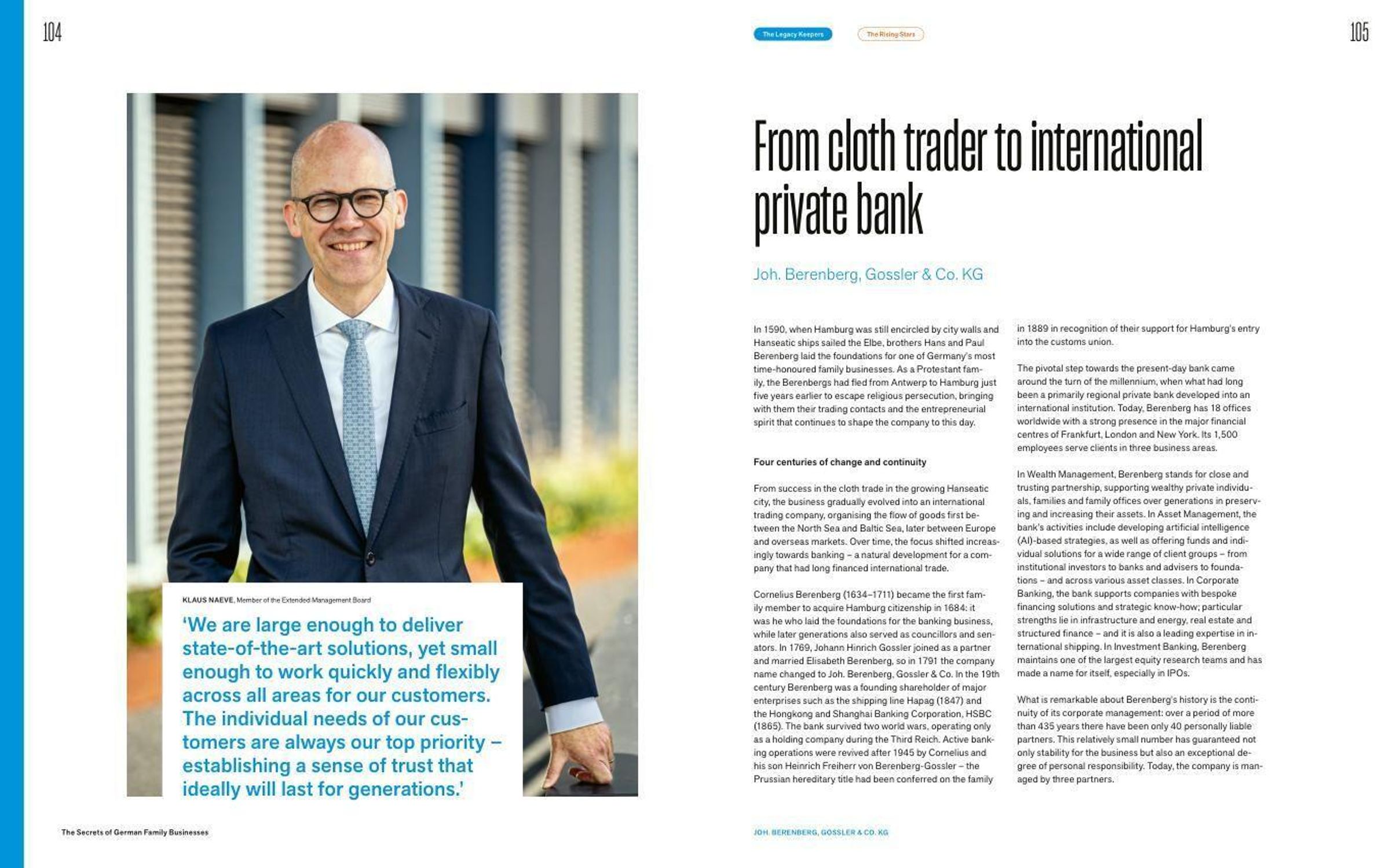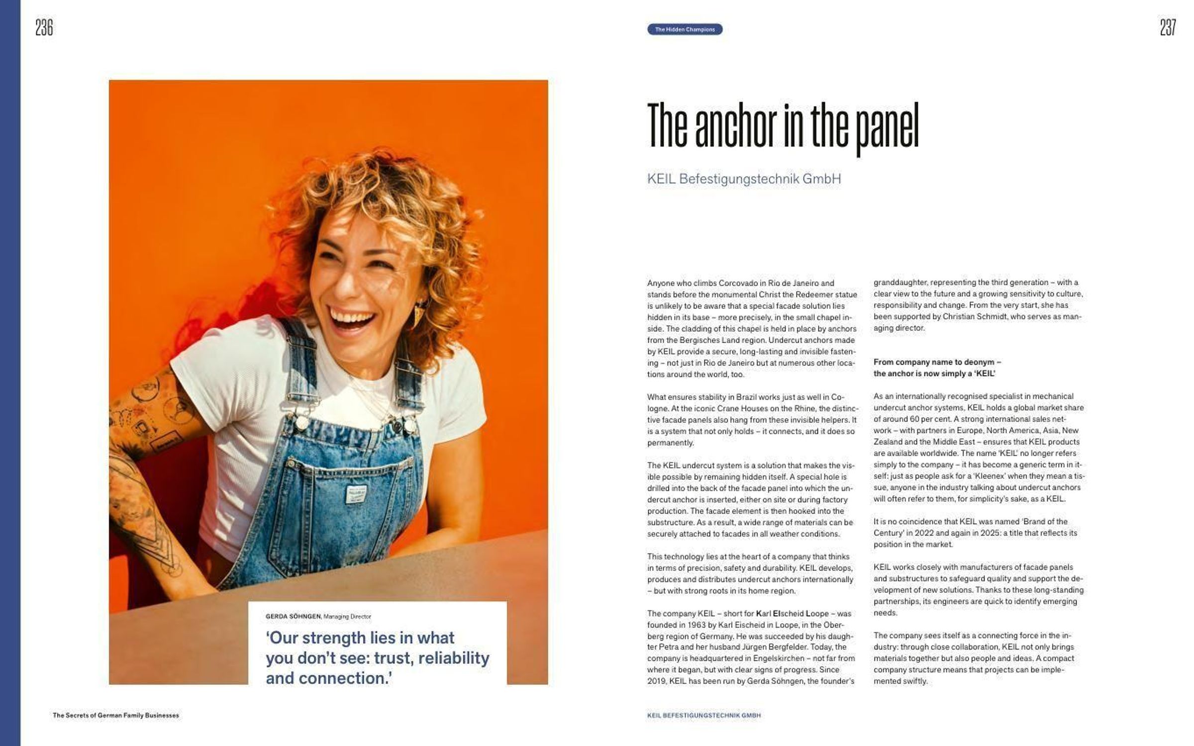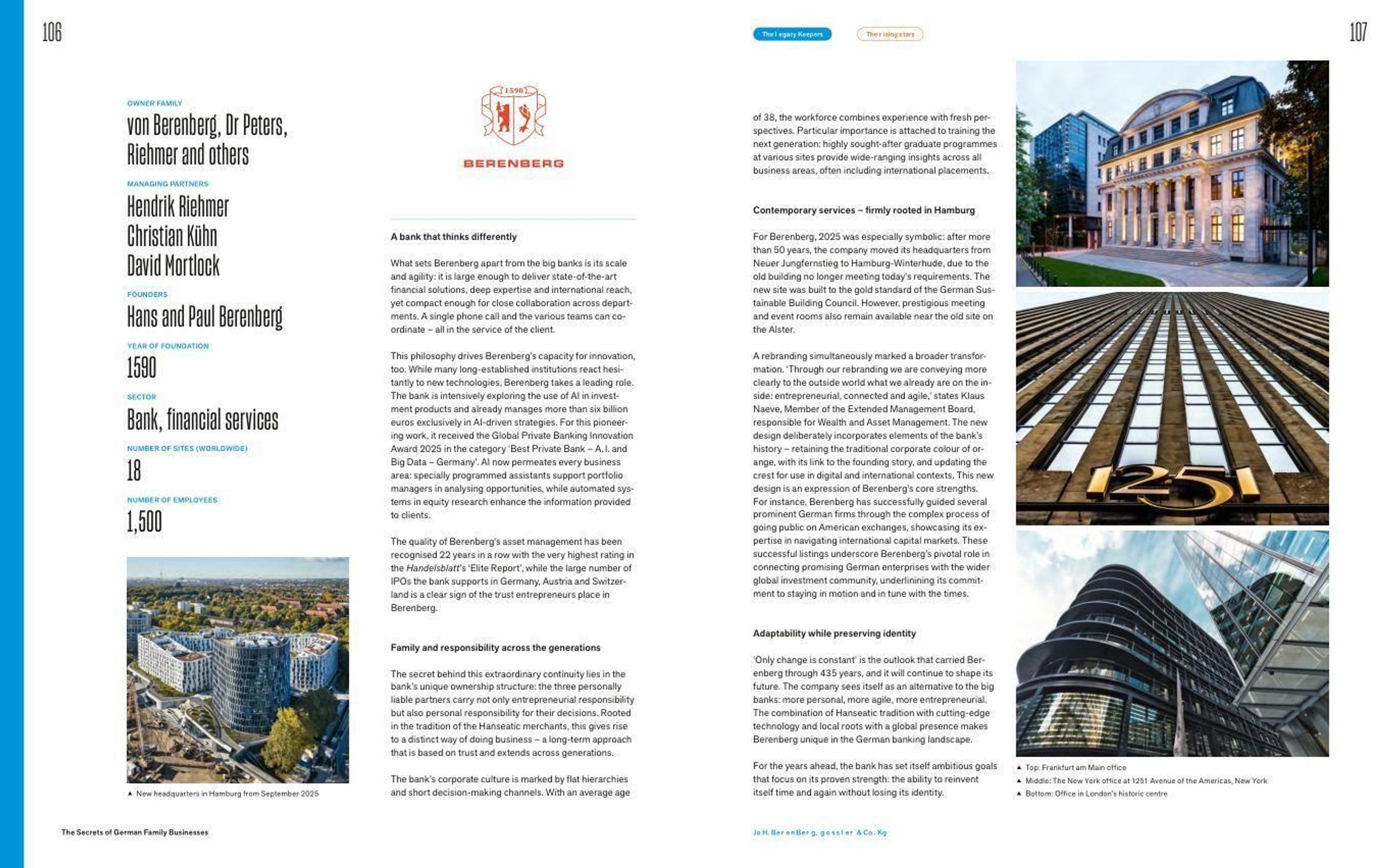 The book also features 50 portraits of German family firms that shed light on the fascinating secrets behind the success of these tradition-steeped brand manufacturers, 'hidden champions' and global market leaders. These stories offer a unique insight into the DNA of the companies concerned, showing how entrepreneurial vision and family values go hand in hand, underpinning their pivotal role in economic resilience, stability and future viability worldwide.