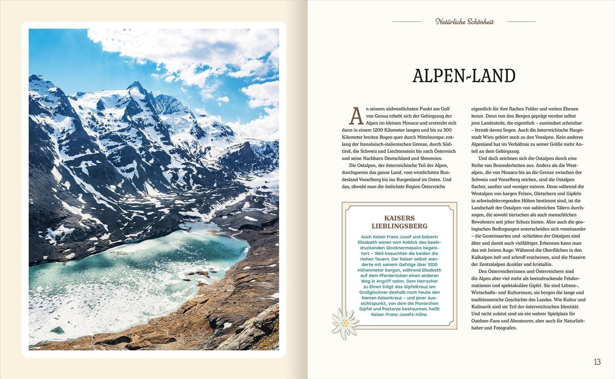 - **Naturschätze des Landes:**Majestätische Gipfel, sanfte Almwiesen und idyllische Seen - von den Hohen Tauern über den Dachstein bis zum Neusiedler See: Österreichs Landschaften verzaubern zu jeder Jahreszeit