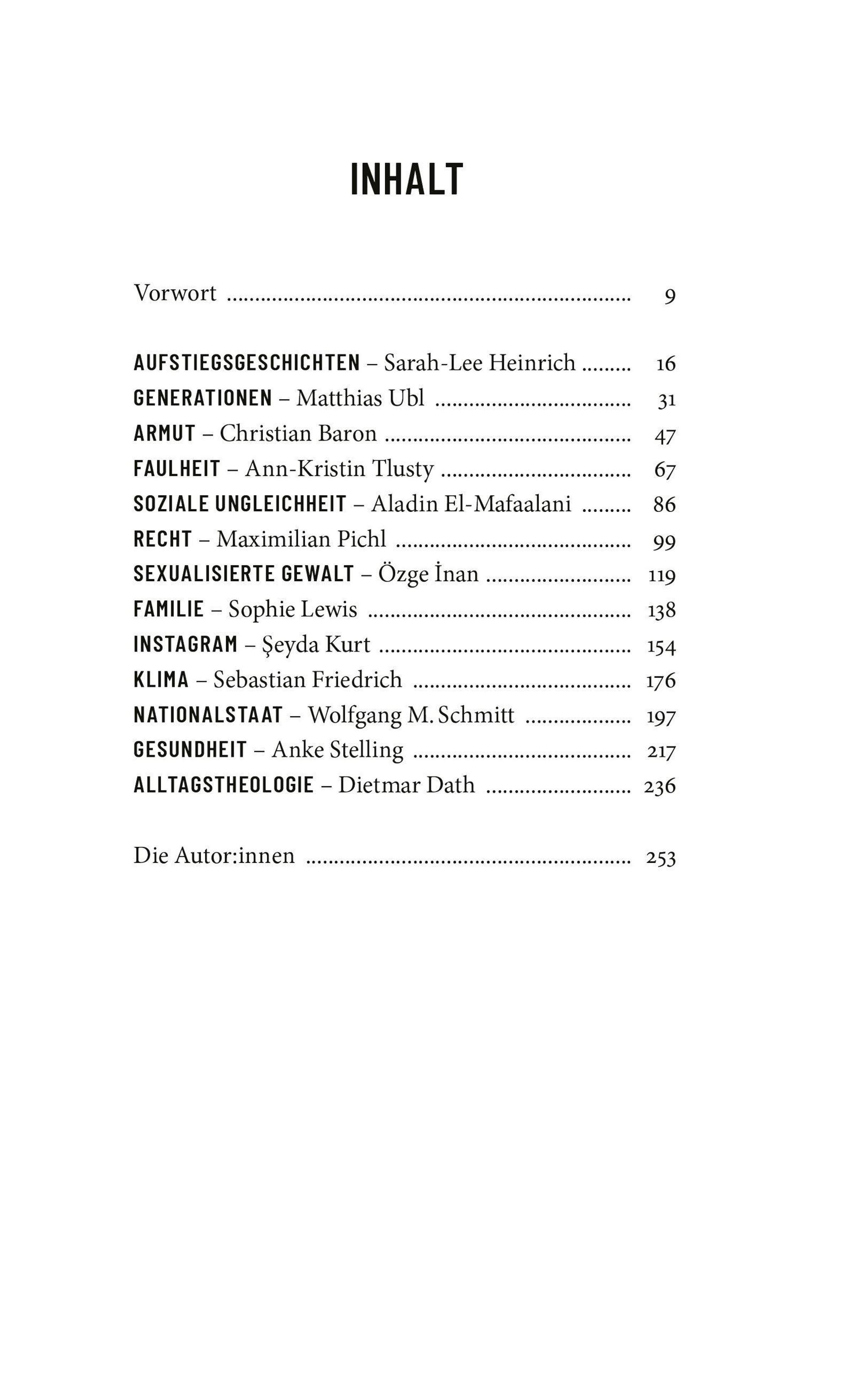- Mit Beiträgen von Christian Baron, Dietmar Dath, Aladin El-Mafaalani, Sarah-Lee Heinrich, Özge Inan, Seyda Kurt uvm.