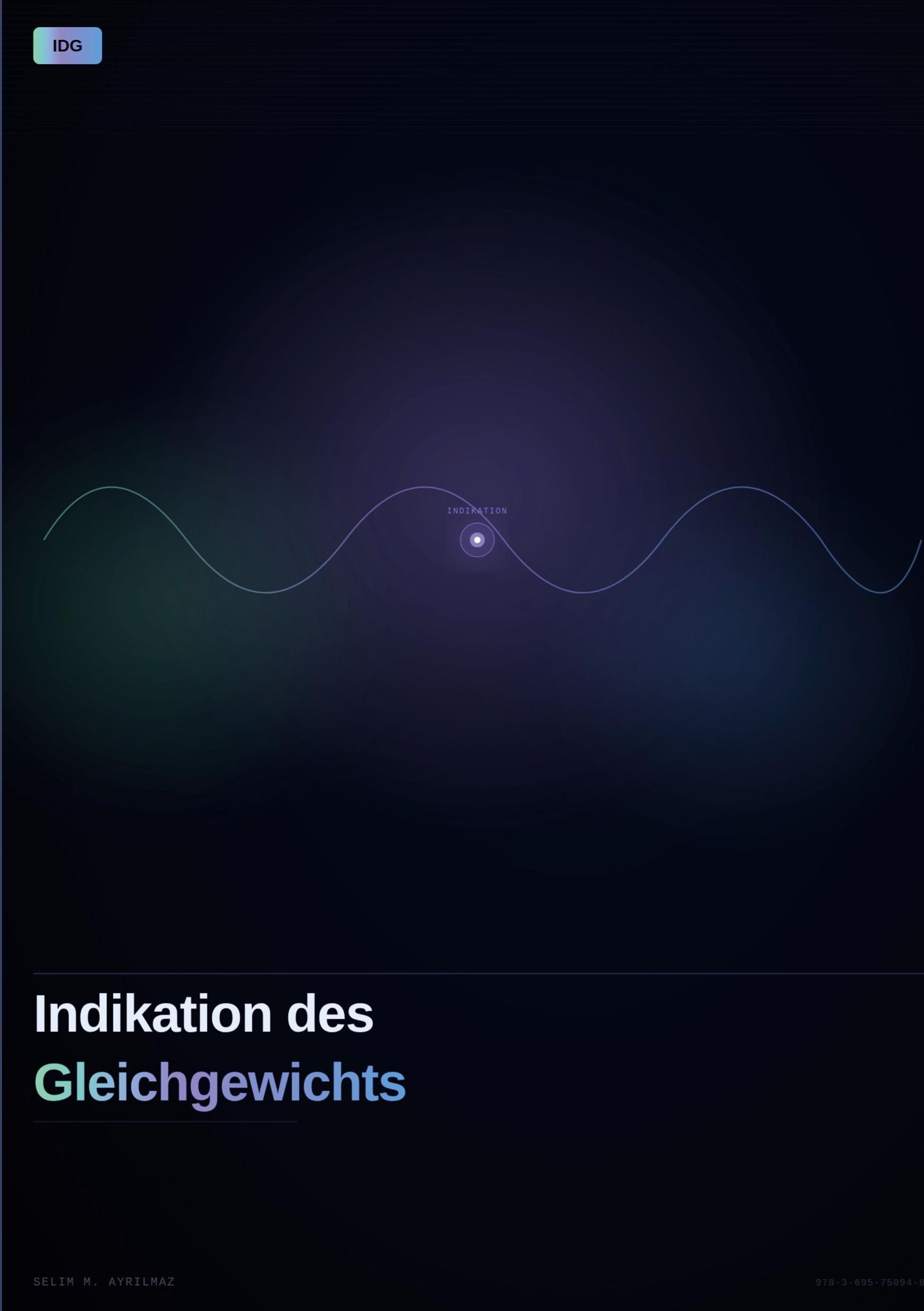 Text oben: "IDG". Zentral: Indikation, Welle. Unten: "Indikation des Gleichgewichts", Name "Selim M. Ayrilmaz"., Buch