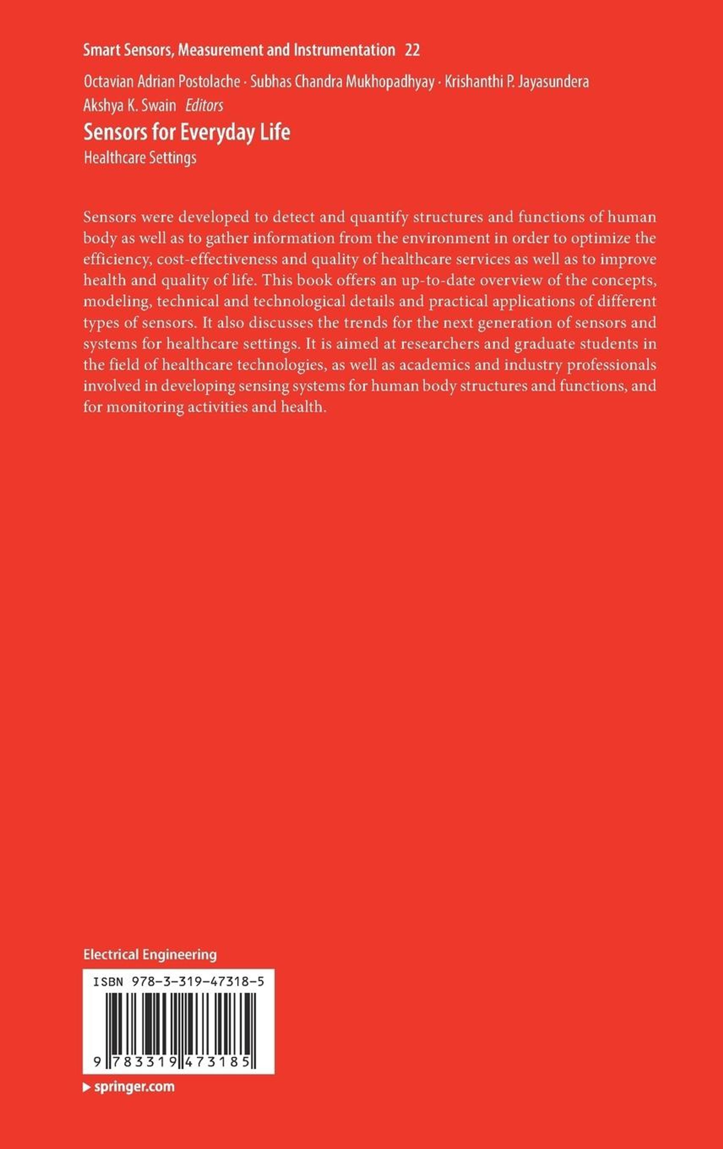 Sensors were developed to detect and quantify structures and functions of human body as well as to gather information from the environment in order to optimize the efficiency, cost-effectiveness and quality of healthcare services as well as to improve health and quality of life. This book offers an up-to-date overview of the concepts, modeling, technical and technological details and practical applications of different types of sensors. It also discusses the trends for the next generation of sensors and systems for healthcare settings. It is aimed at researchers and graduate students in the field of healthcare technologies, as well as academics and industry professionals involved in developing sensing systems for human body structures and functions, and for monitoring activities and health.