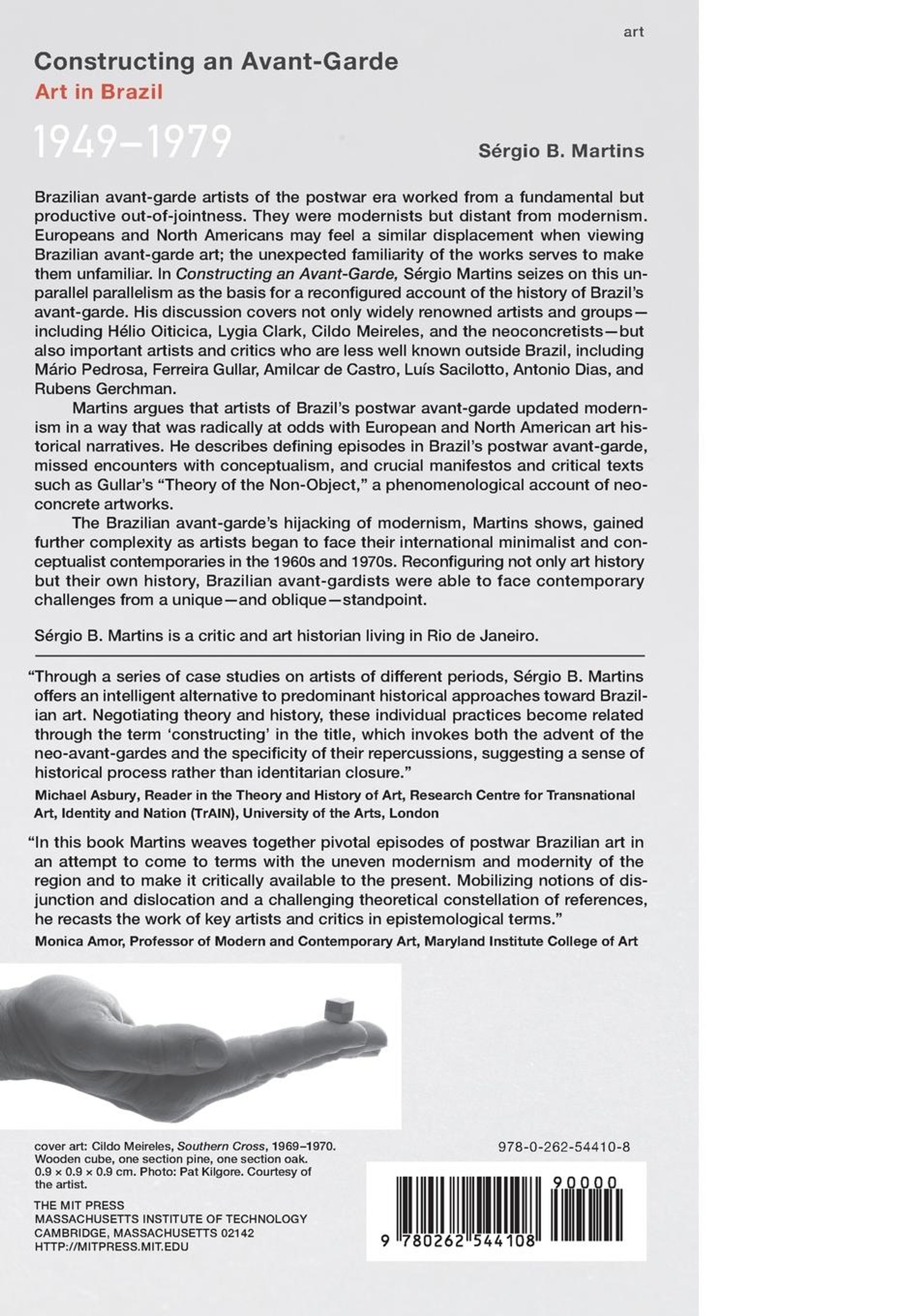 Brazilian avant-garde artists of the postwar era worked from a fundamental but productive out-of-jointness. They were modernist but distant from modernism. Europeans and North Americans may feel a similar displacement when viewing Brazilian avant-garde art; the unexpected familiarity of the works serves to make them unfamiliar. In Constructing an Avant-Garde , Sérgio Martins seizes on this uncanny obliqueness and uses it as the basis for a reconfigured account of the history of Brazil's avant-garde. His discussion covers not only widely renowned artists and groups---including Hélio Oiticica, Lygia Clark, Cildo Meireles, and neoconcretism---but also important artists and critics who are less well known outside Brazil, including Mário Pedrosa, Ferreira Gullar, Amílcar de Castro, Luís Sacilotto, Antonio Dias, and Rubens Gerchman.