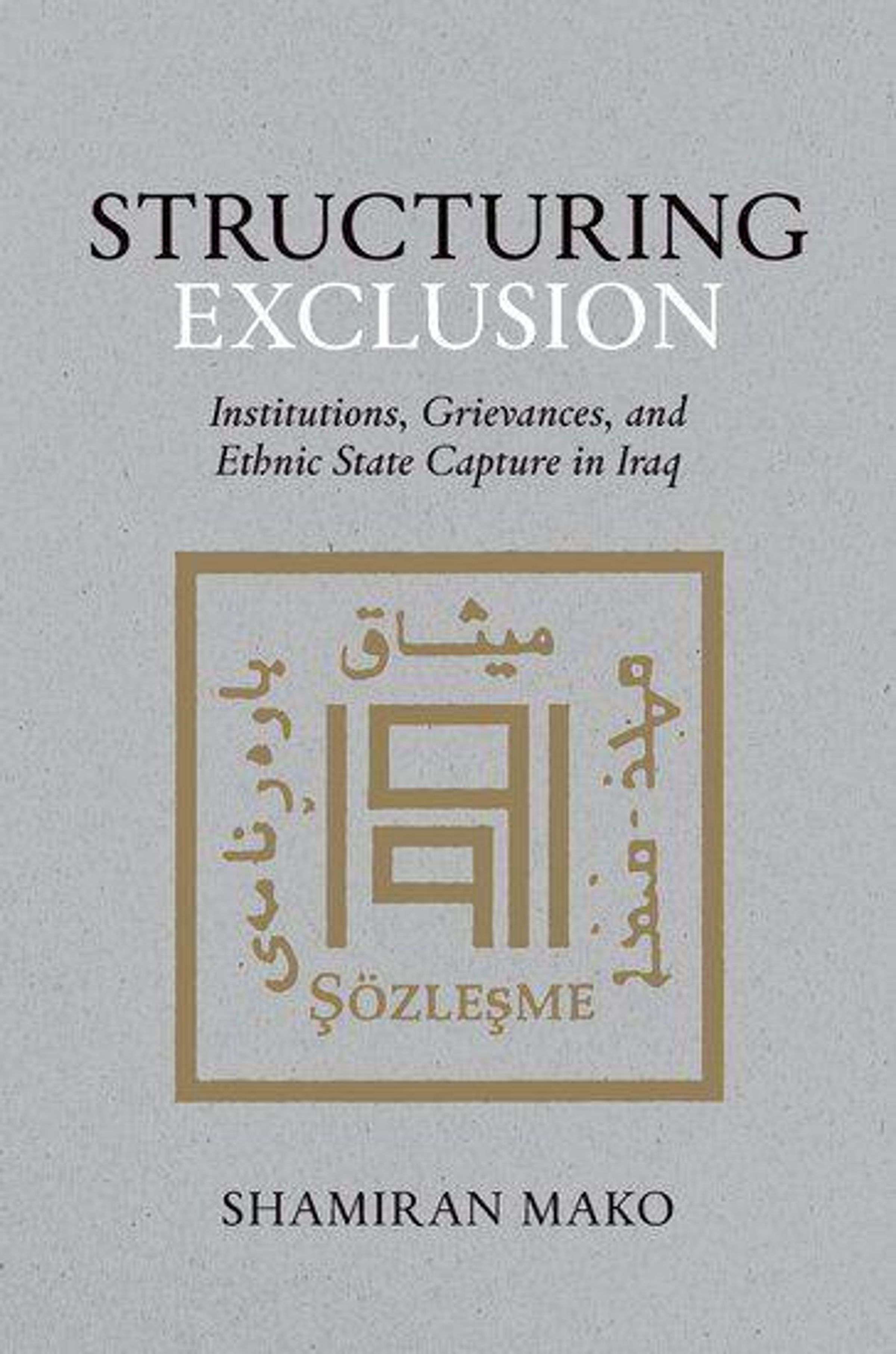 What role do institutions play in structuring ethnic dominance and state capture in divided societies? How do historical legacies of exclusion and repression influence communal mobilization and elite institutional preferences? In Structuring Exclusion: Institutions, Grievances, and Ethnic State Capture, Mako proposes a historical institutionalist framework to explain how ethnic elites rely on state institutions to entrench group dominance and affect power-sharing outcomes in divided, post-colonial societies. Through a systematic analysis of elite institutional dominance strategies across critical statebuilding junctures, this book posits that ethnic grievances and group mobilization are informed by past collective experiences with exclusion and repression as causal mechanisms that structure communal conflict overtime. Using Iraq as a case study, Mako develops a novel theory of ethnic state capture that links elite institutional choices to strategies of political control. The book advances a processual argument to illustrate how historical legacies shape elite bargaining strategies and institutional preferences during the initial phases of post-conflict statebuilding in deeply divided societies. Drawing on extensive archival research, elite memoirs and interviews, and a systematic examination of legal and institutional changes across various regimes, the book shows how elites construct exclusionary institutions to maintain dominance. By situating Iraq within comparative works on post-colonial state-building, the book advances a processual argument about how historical legacies inform elite bargaining and institutional design as control strategies in deeply divided societies.